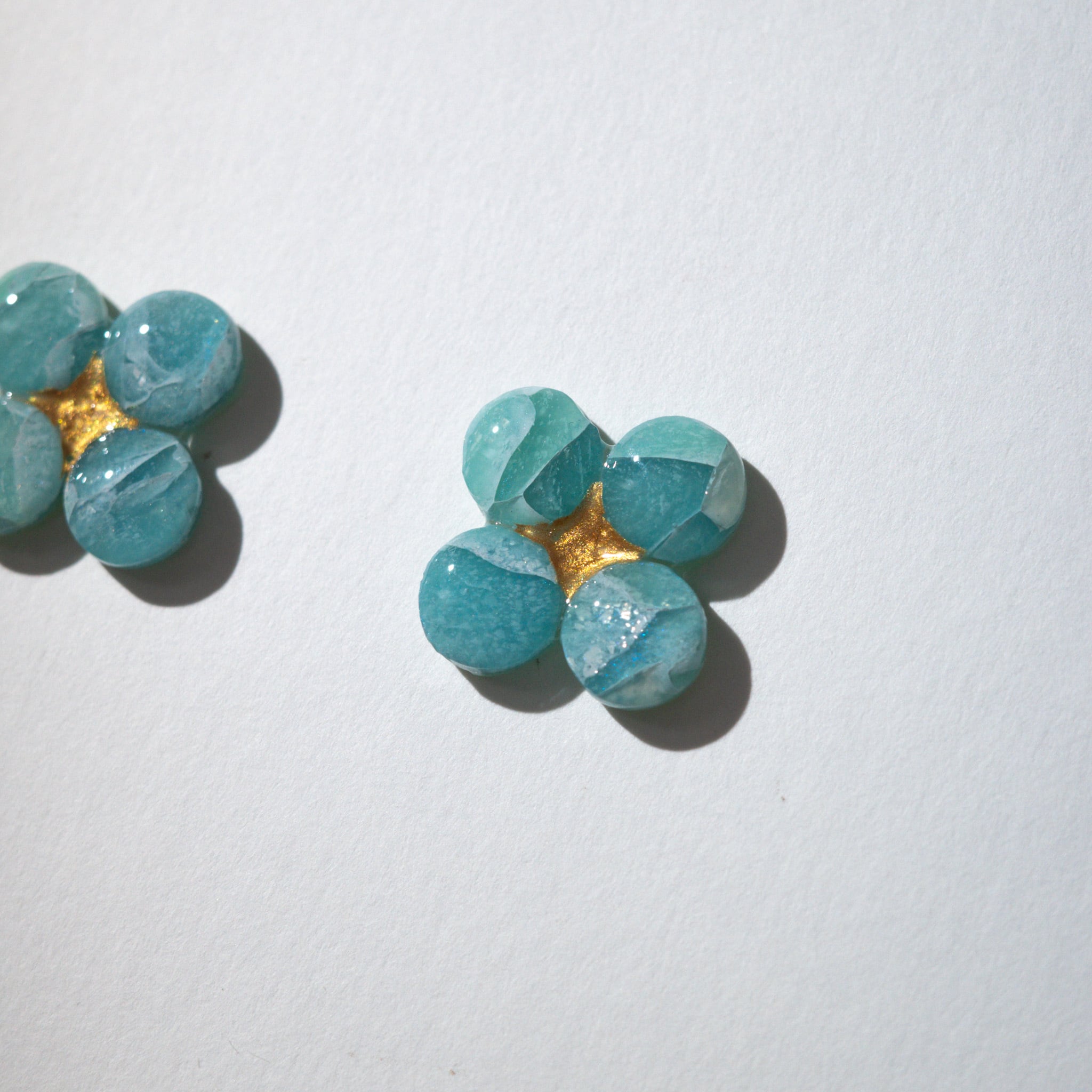デザインにはポリマークレイとアクリルインクを使い、上から樹脂コーティングを施しています。