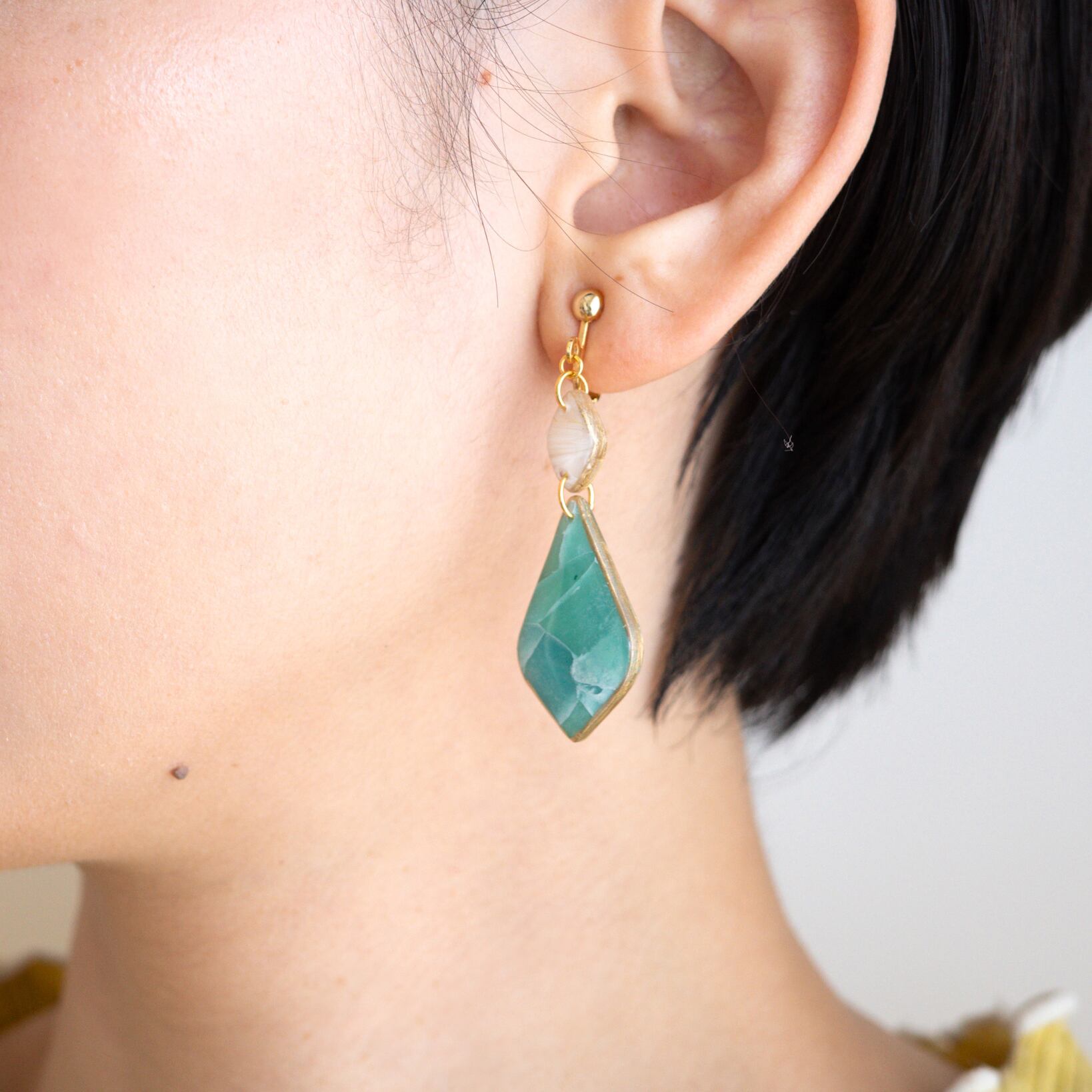 フックピアス・またはネジバネ式イヤリングのどちらかお選びください。