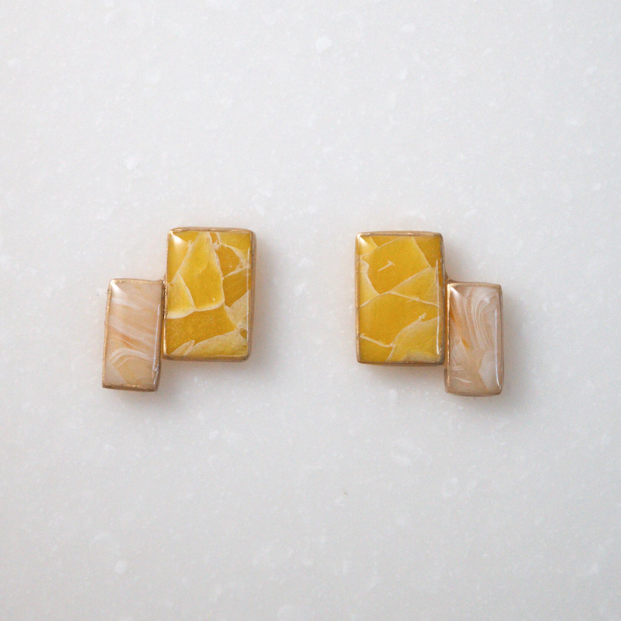 身につけるだけで気分がふっと明るくなるイエローの耳飾り。