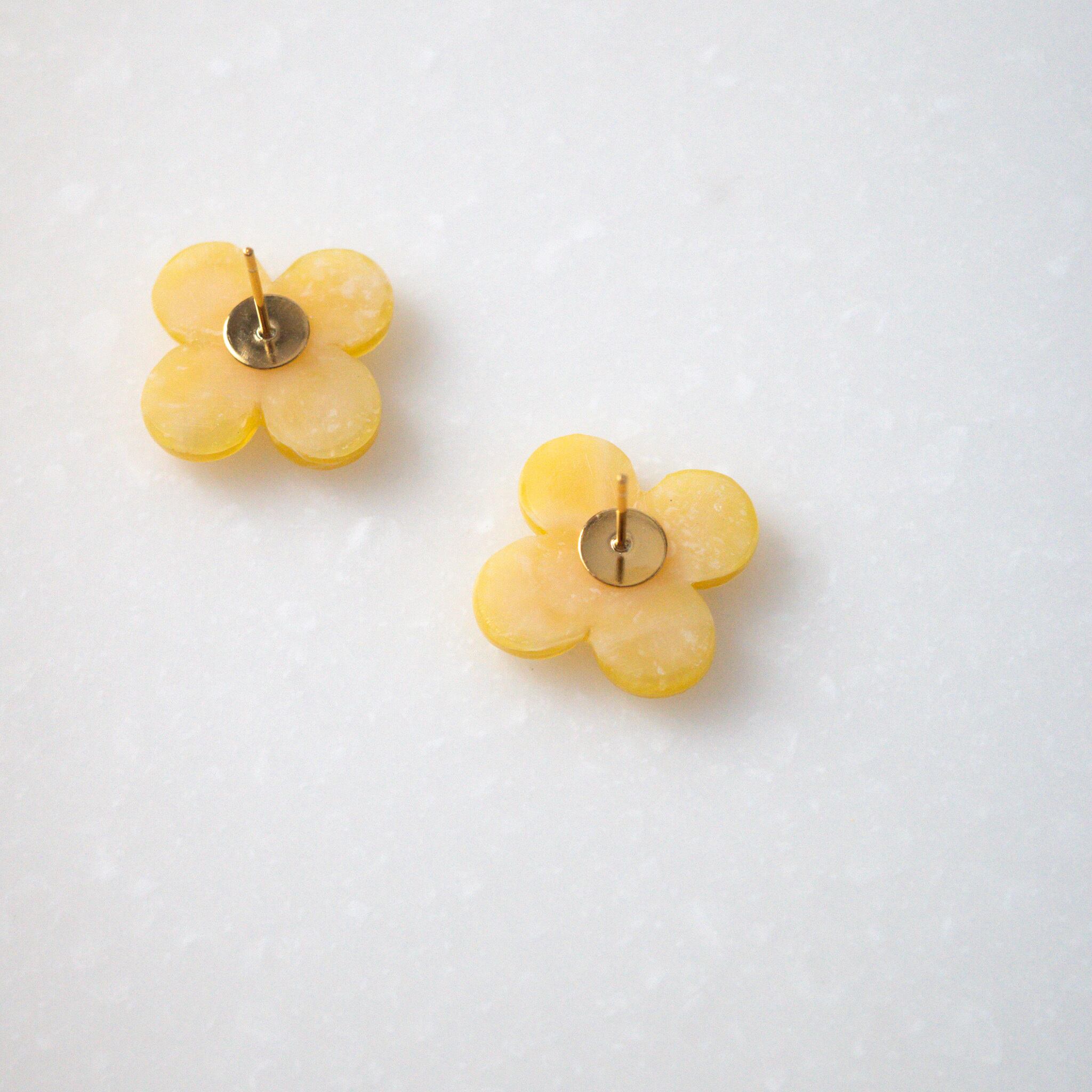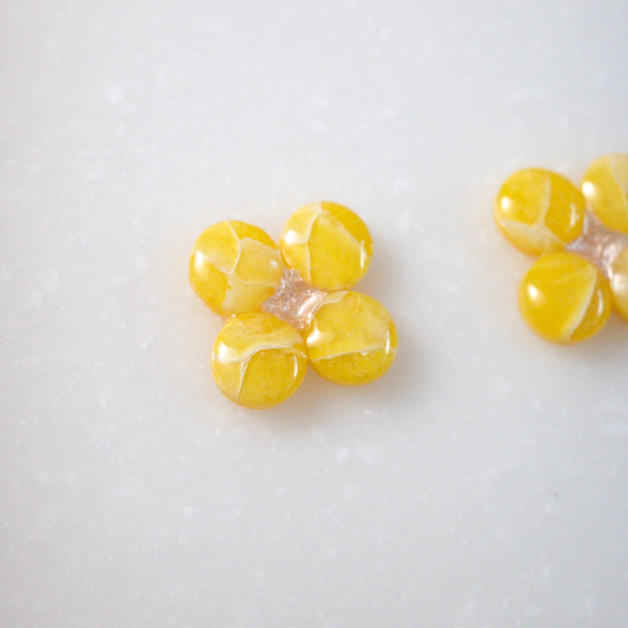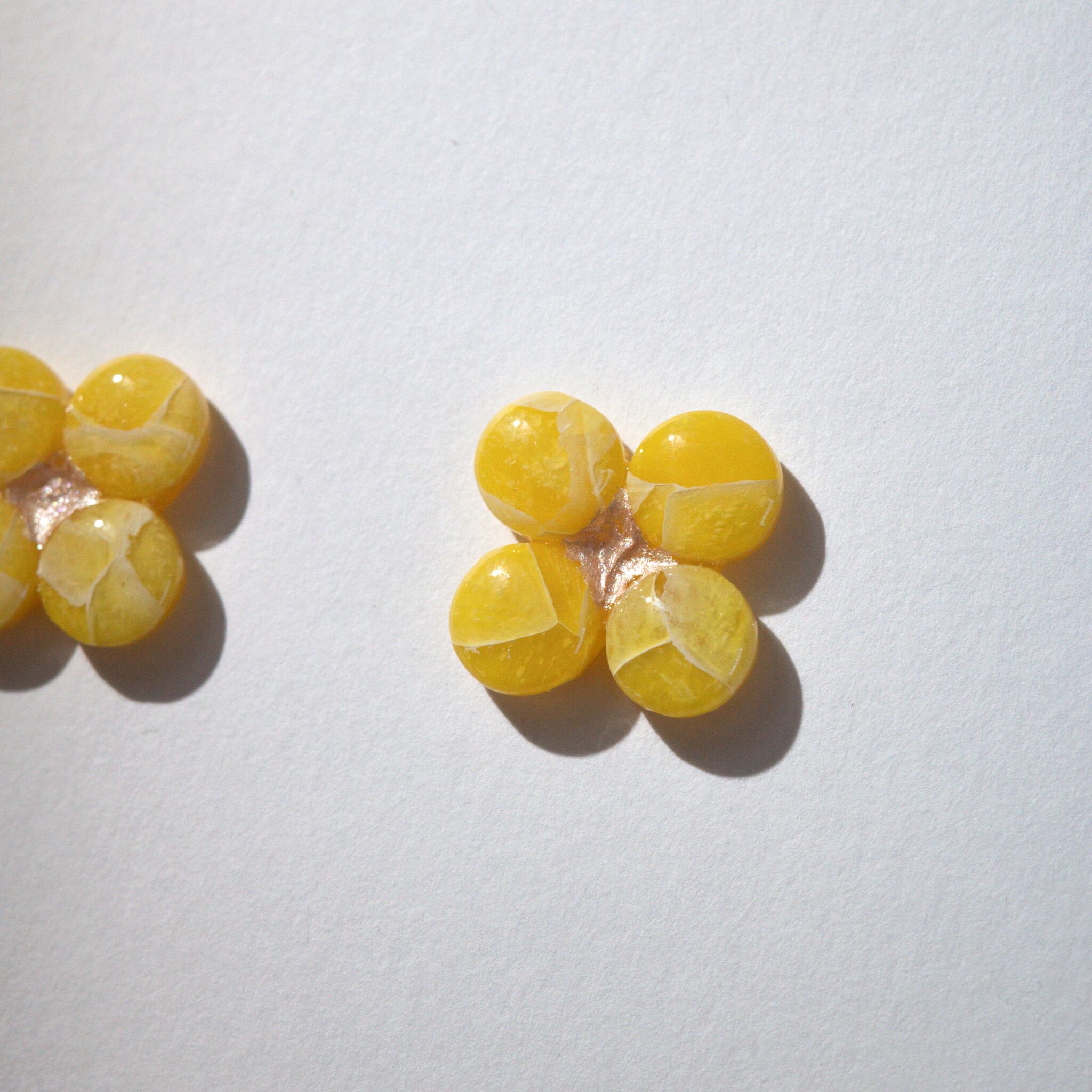 身につけるだけで気分がふっと明るくなるイエローの耳飾り。