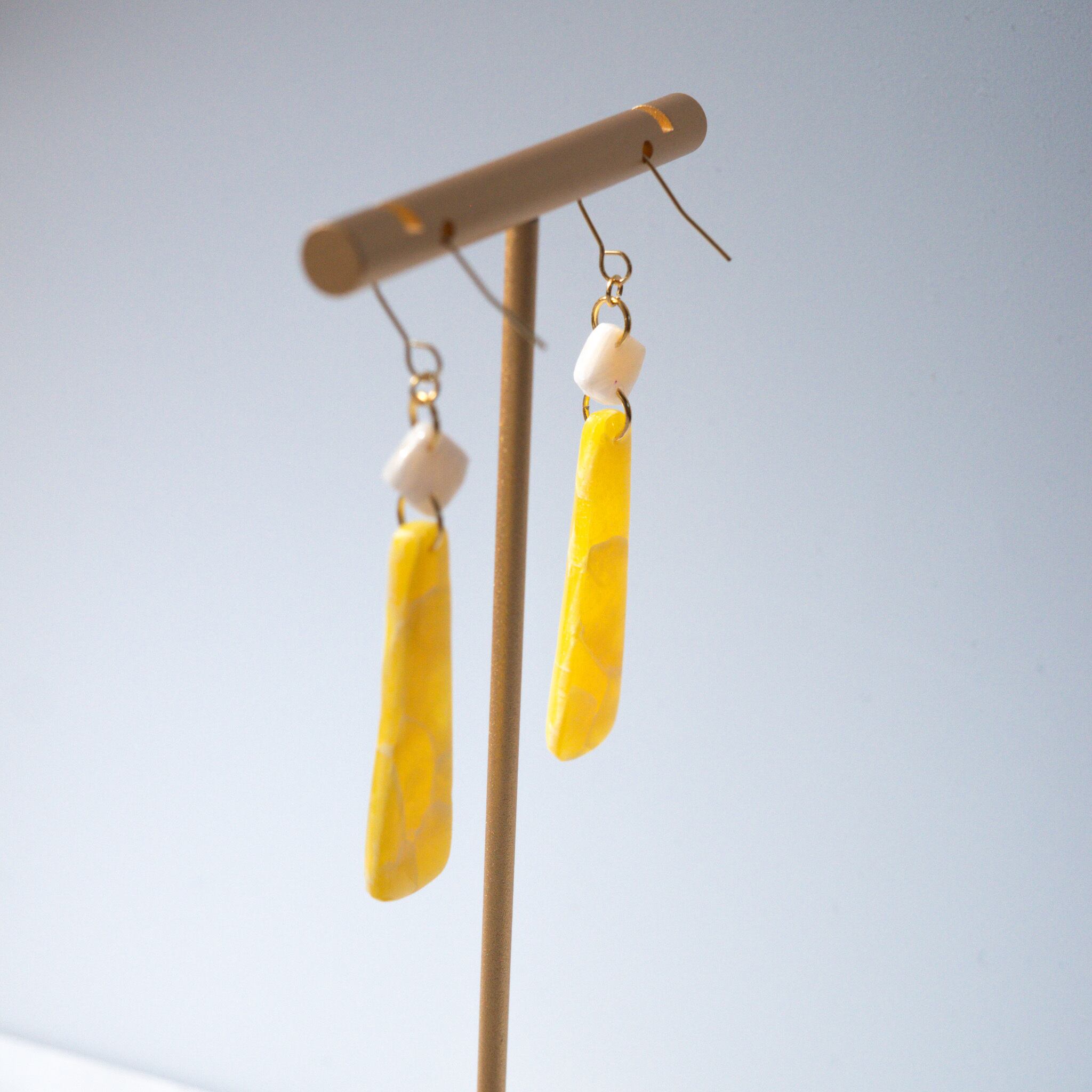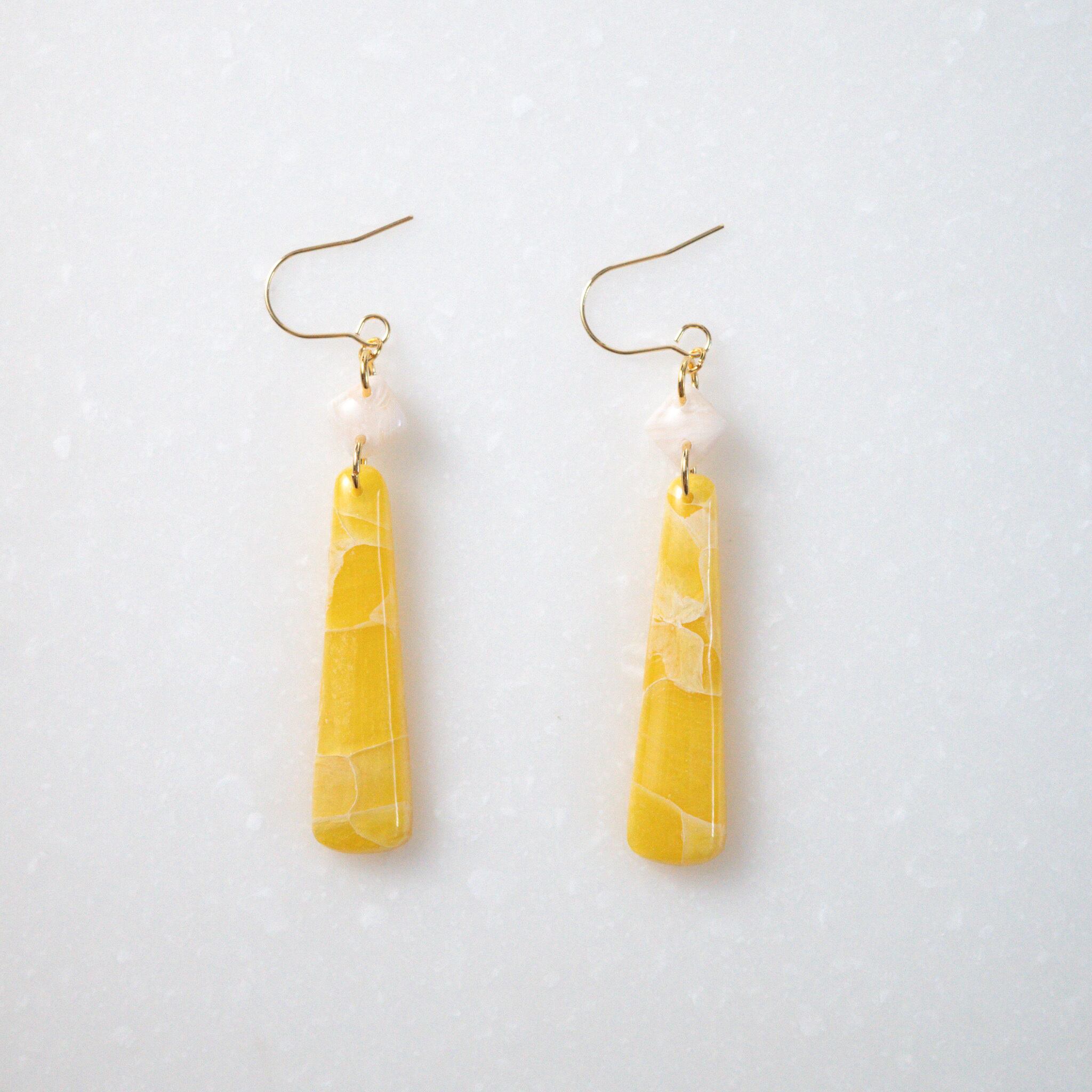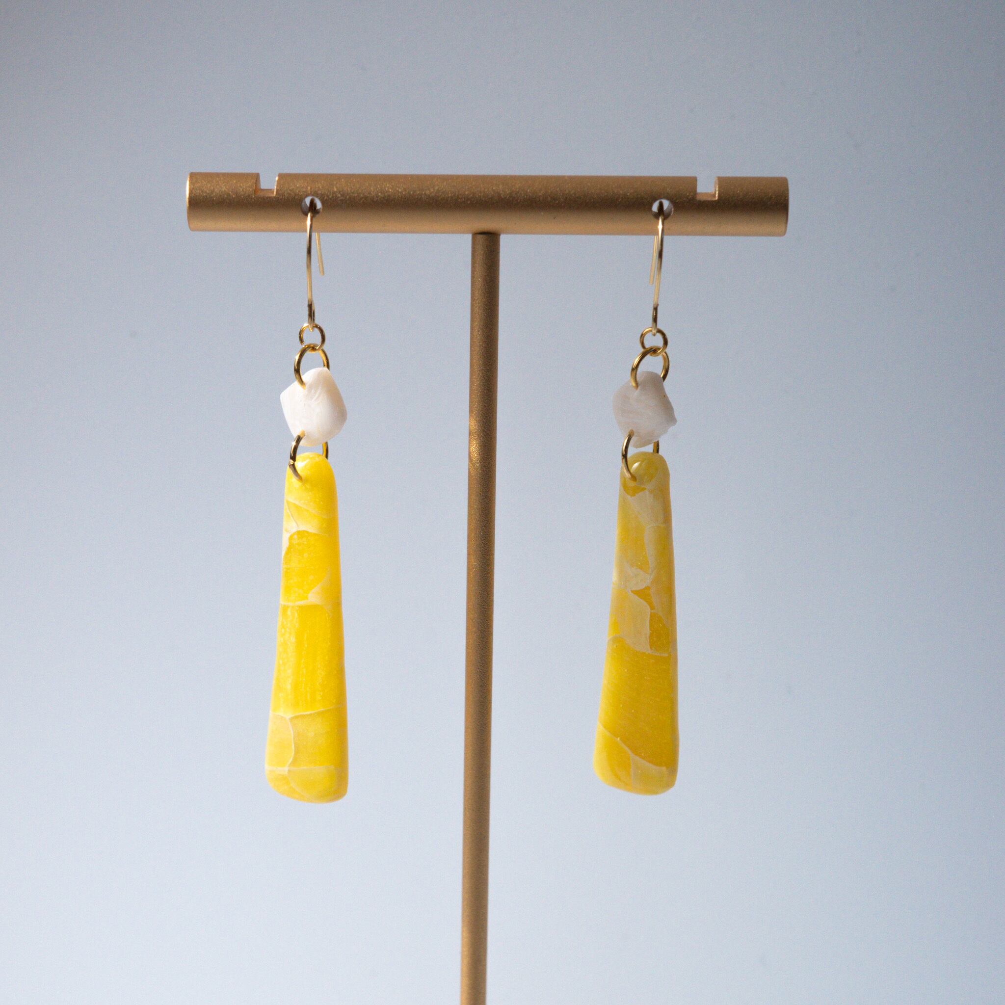 身につけるだけで気分がふっと明るくなるイエローの耳飾り。