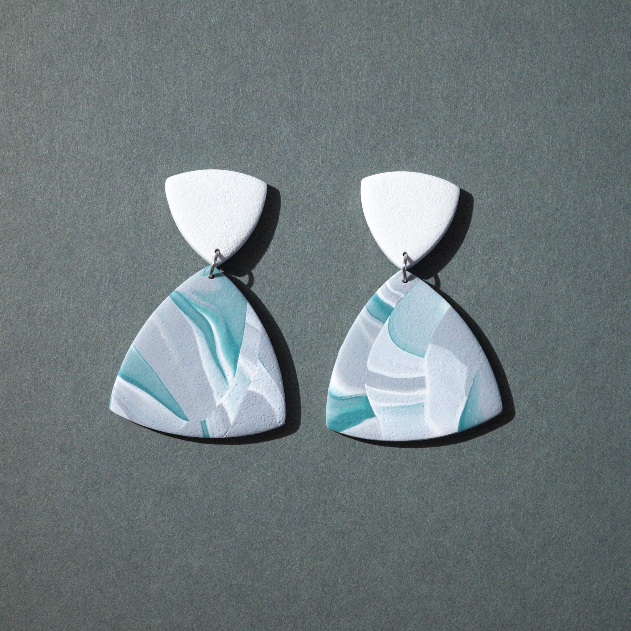 甘さの少ないグレーと、爽やかな青緑とホワイトが溶け合うように混ざったマーブル模様。