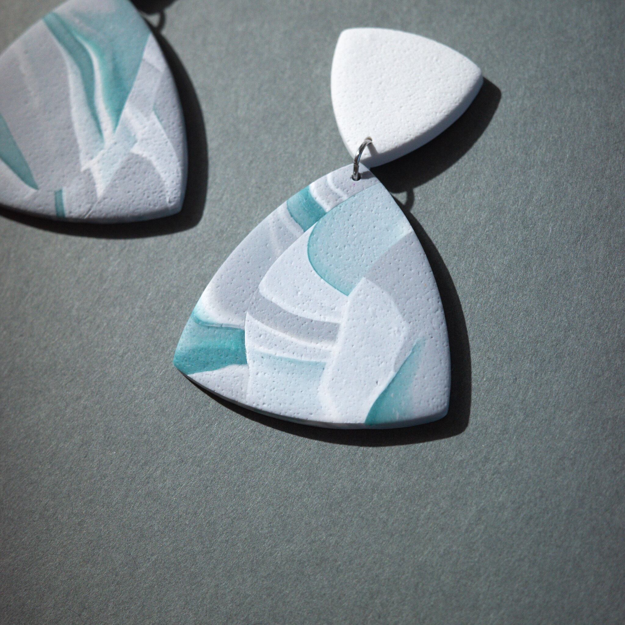 こちらは丸みを帯びた三角をつなげた、大ぶりダングルのデザインです。