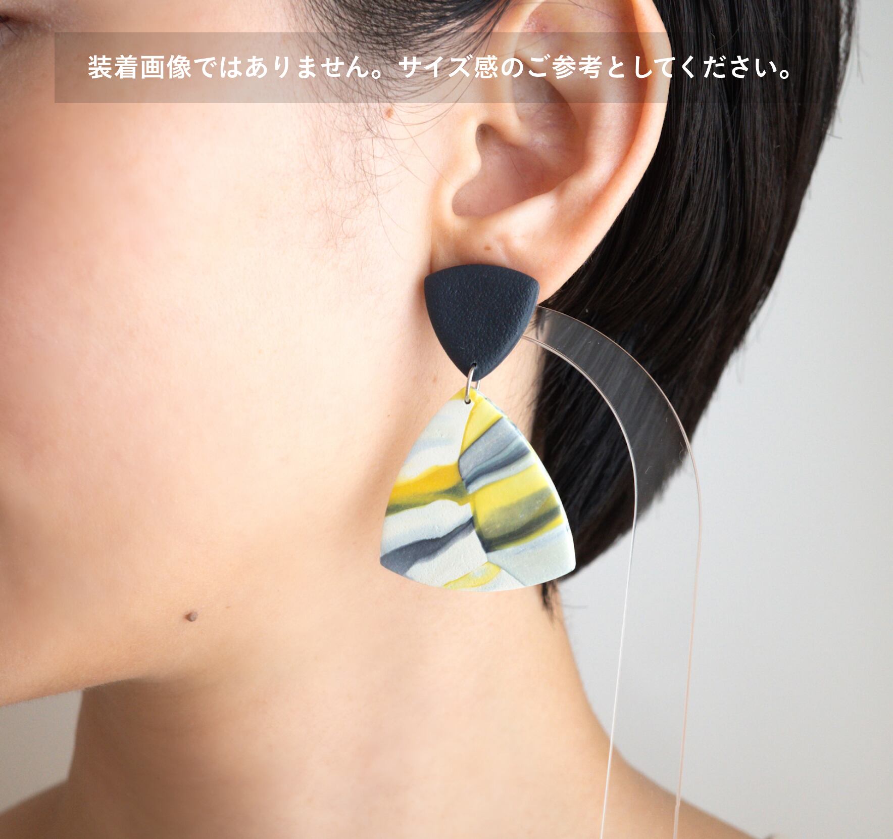 ポリマークレイという焼くと固くなる素材で作成したアクセサリーです。軽量な為、長時間着用しても痛くなりにくい特徴があります。