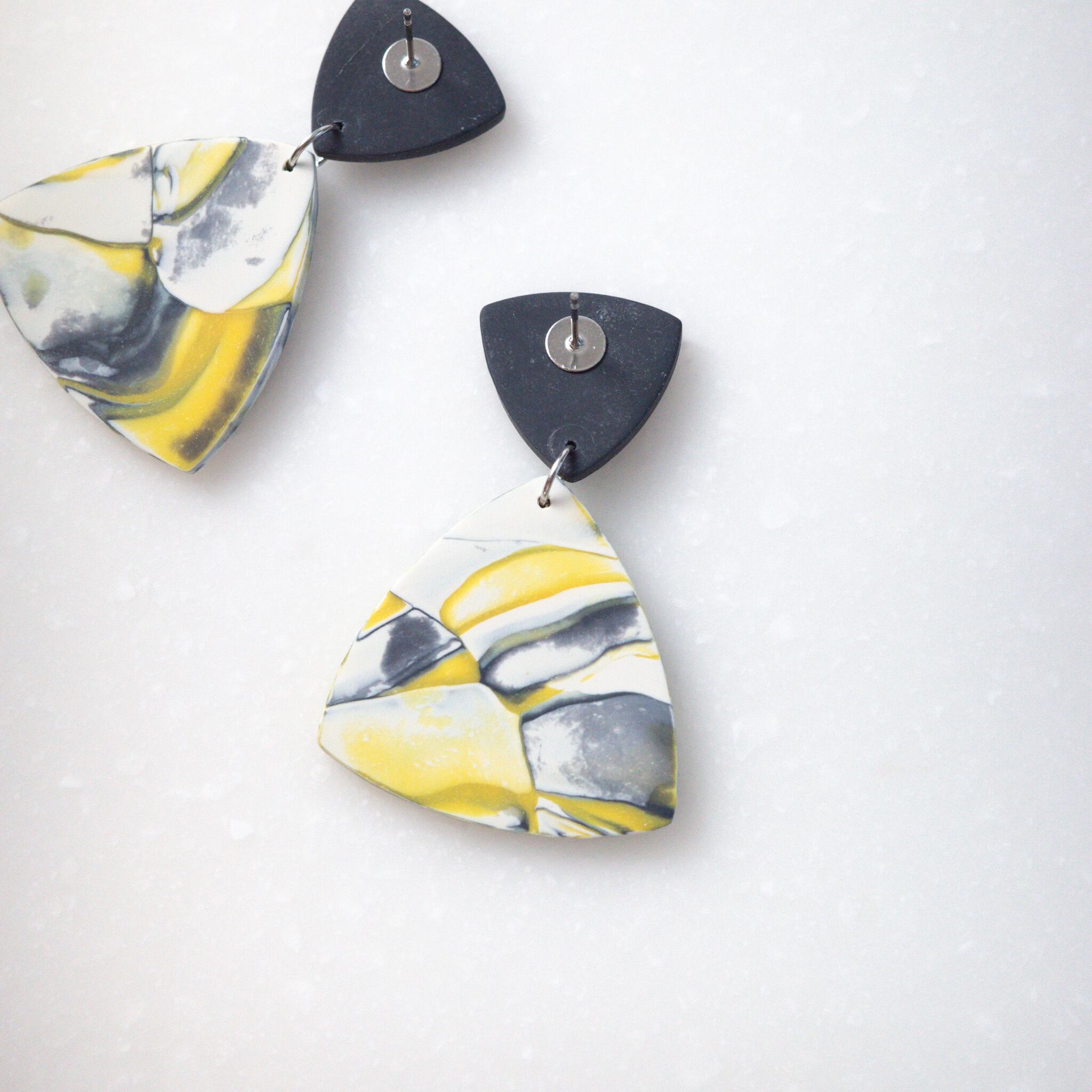 深いネイビーをベースに、鮮やかなイエローとホワイトを混ぜ合わせたマーブル模様。