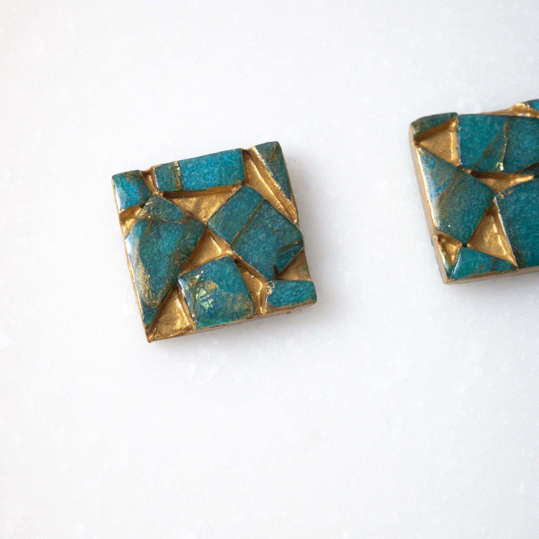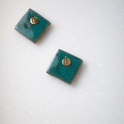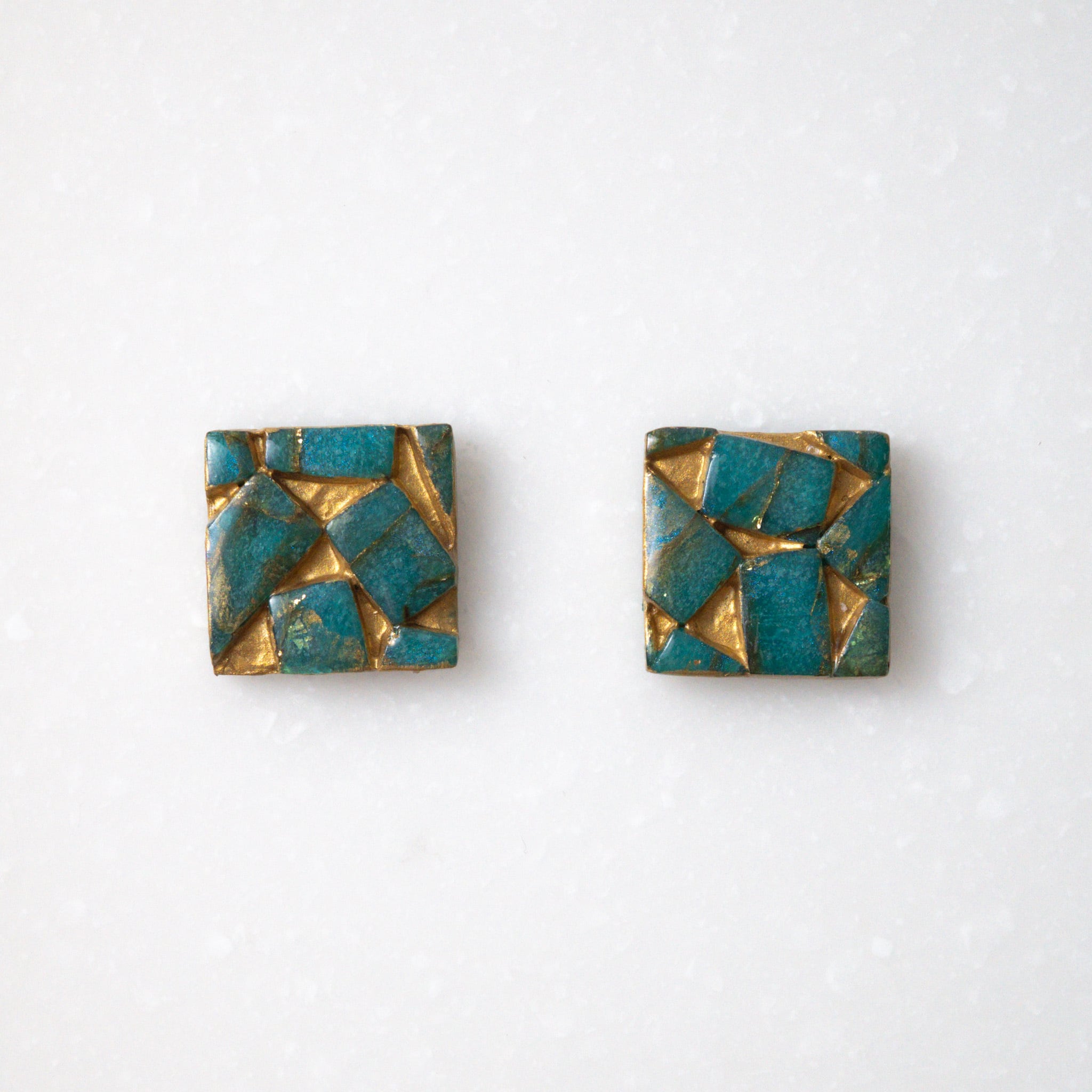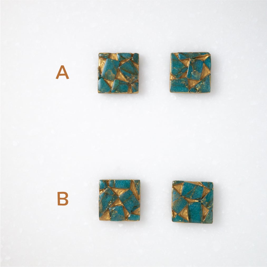 ピーコックグリーンの鉱石のカケラを集めたような耳飾り。