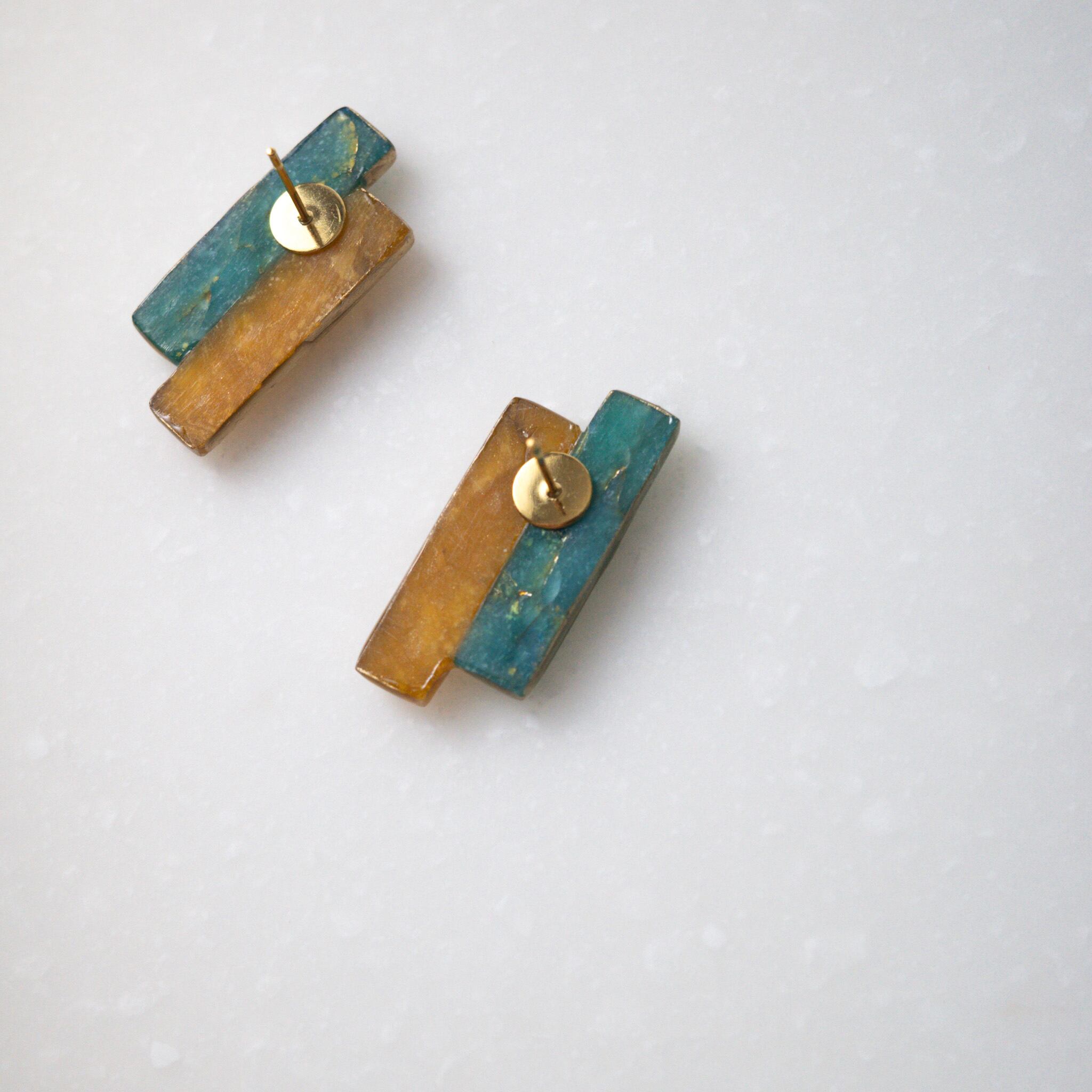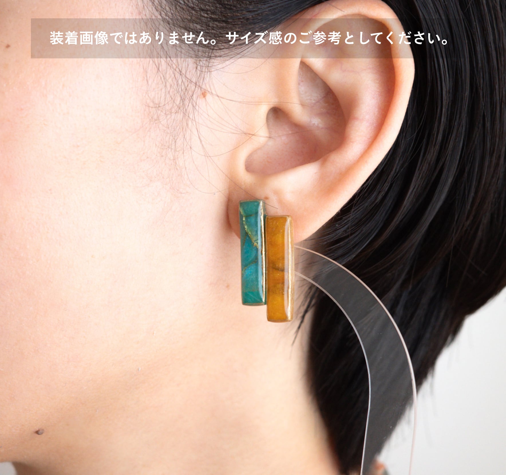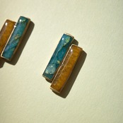 ピーコックグリーンとオリーブイエローの耳飾り。