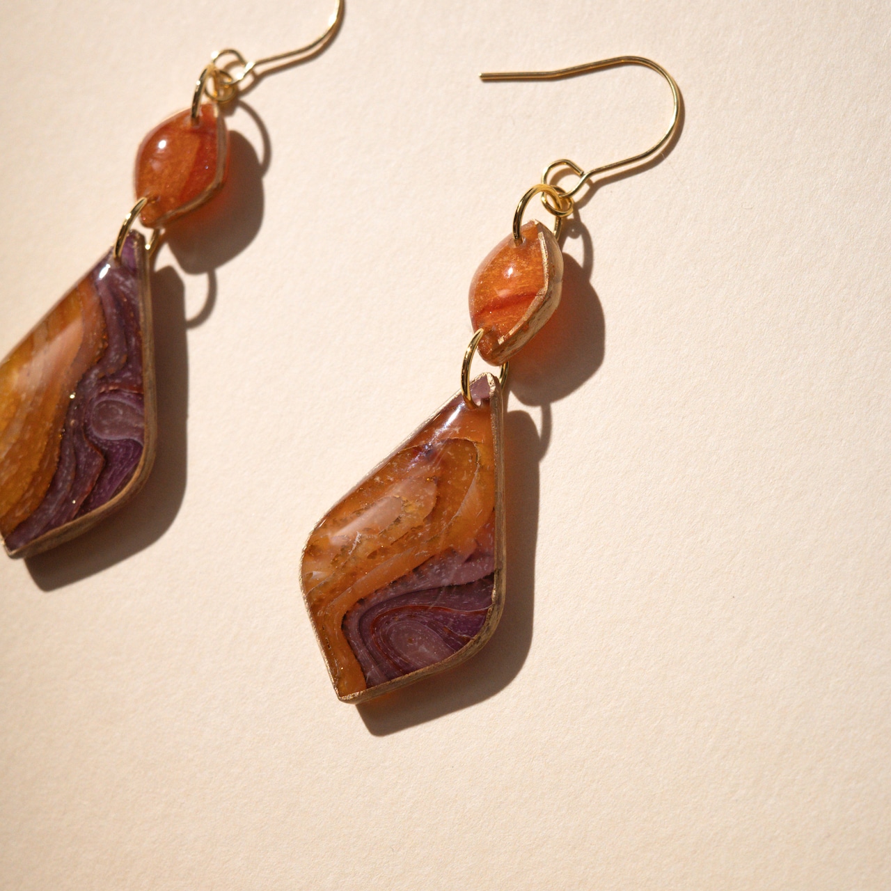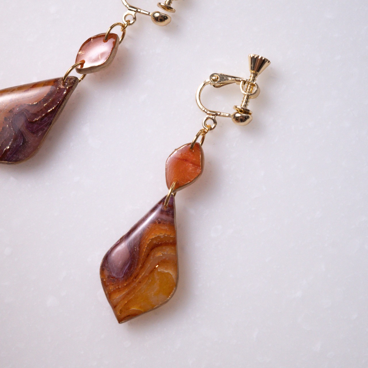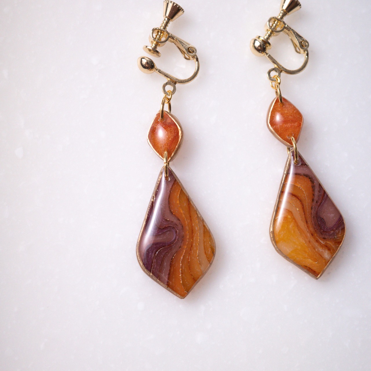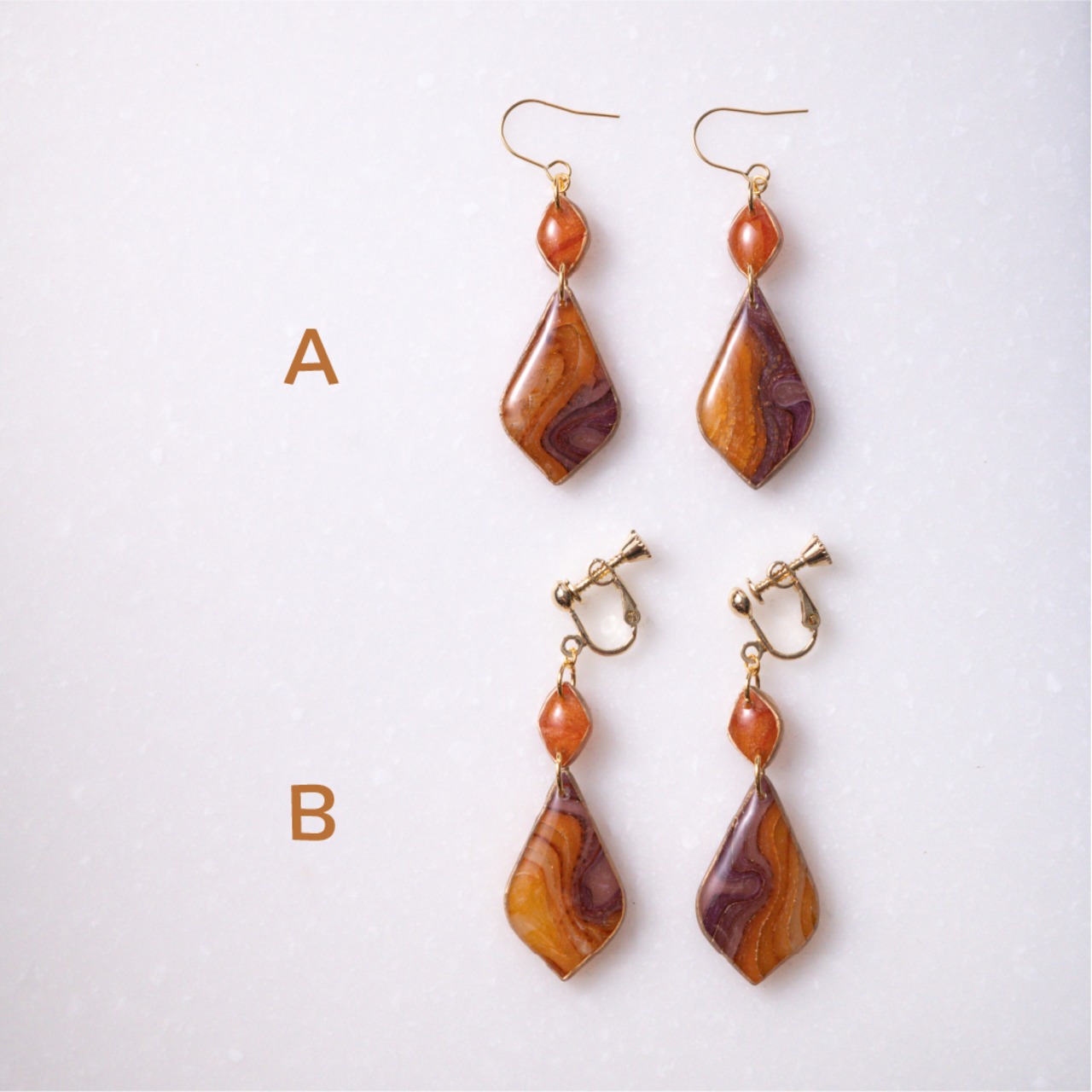 秋の装いにぴったりのオレンジとパープルのアゲート柄。