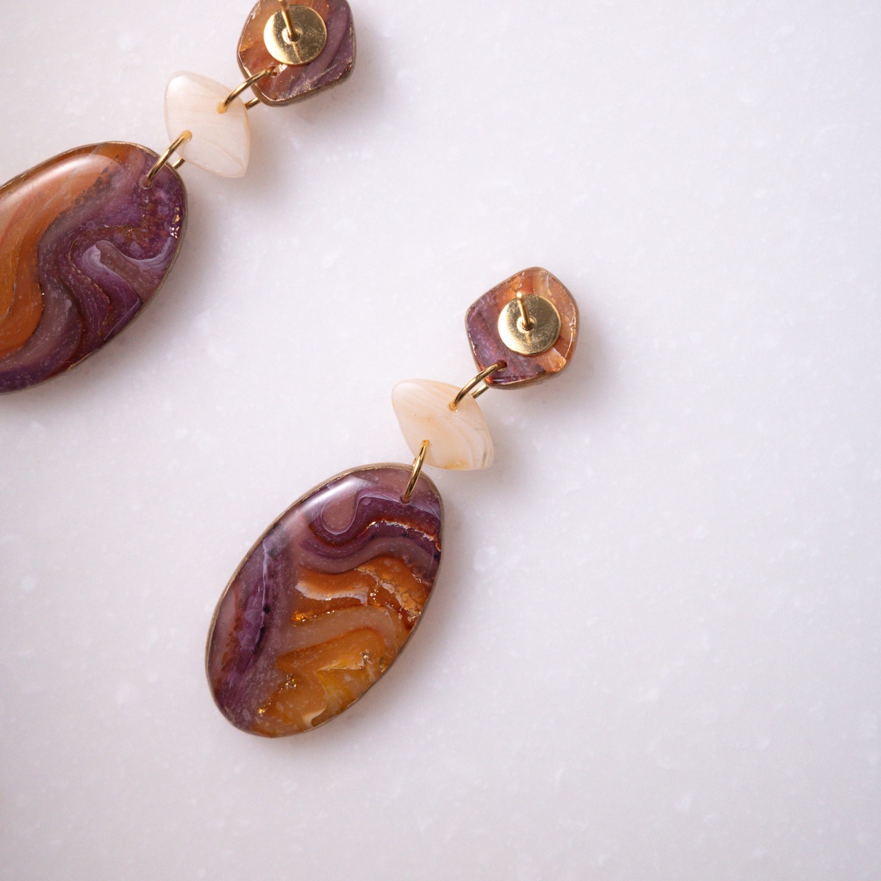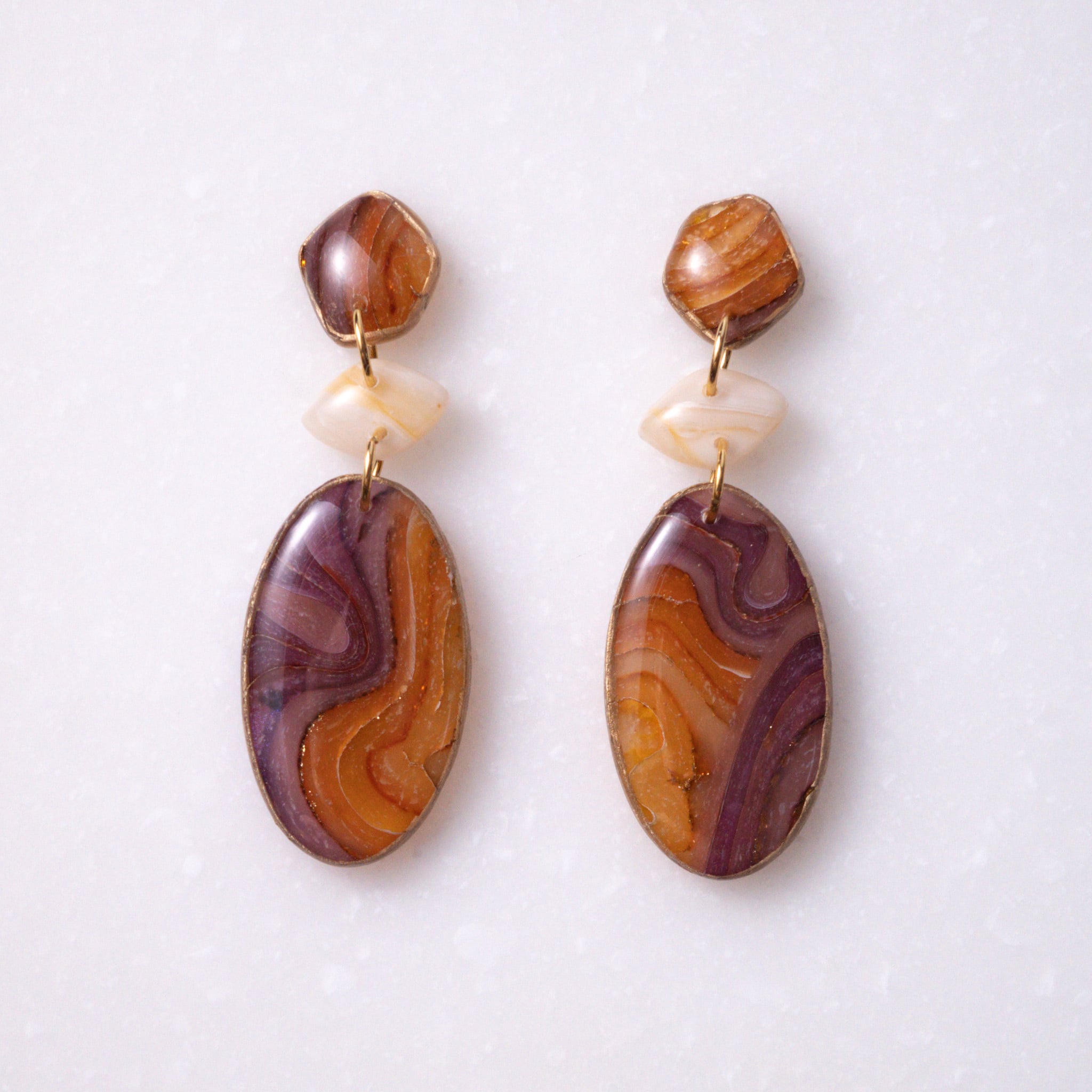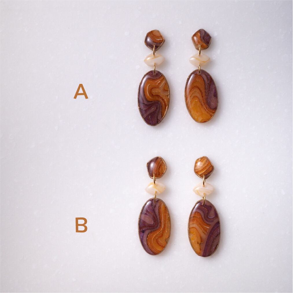 秋の装いにぴったりのオレンジとパープルのアゲート柄。