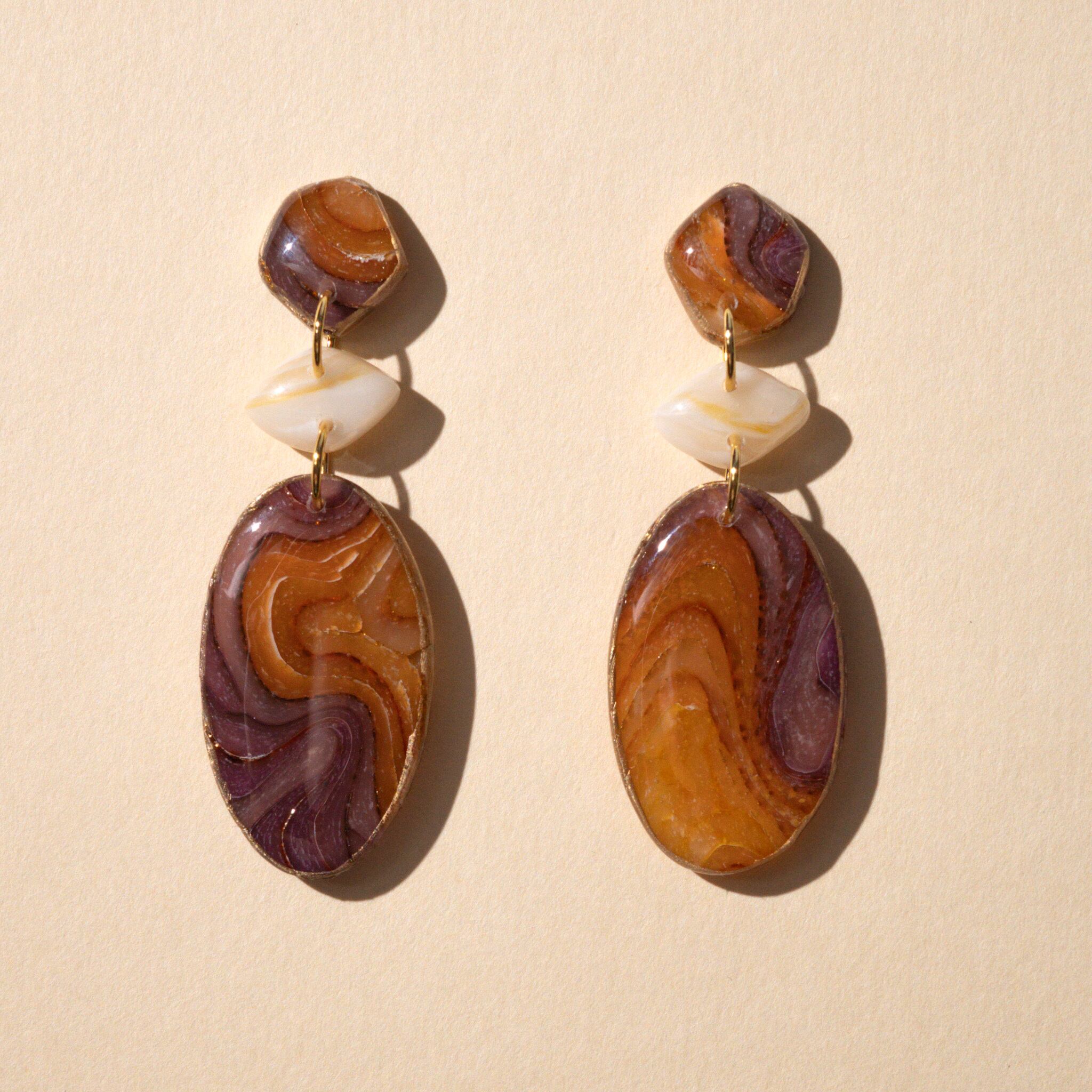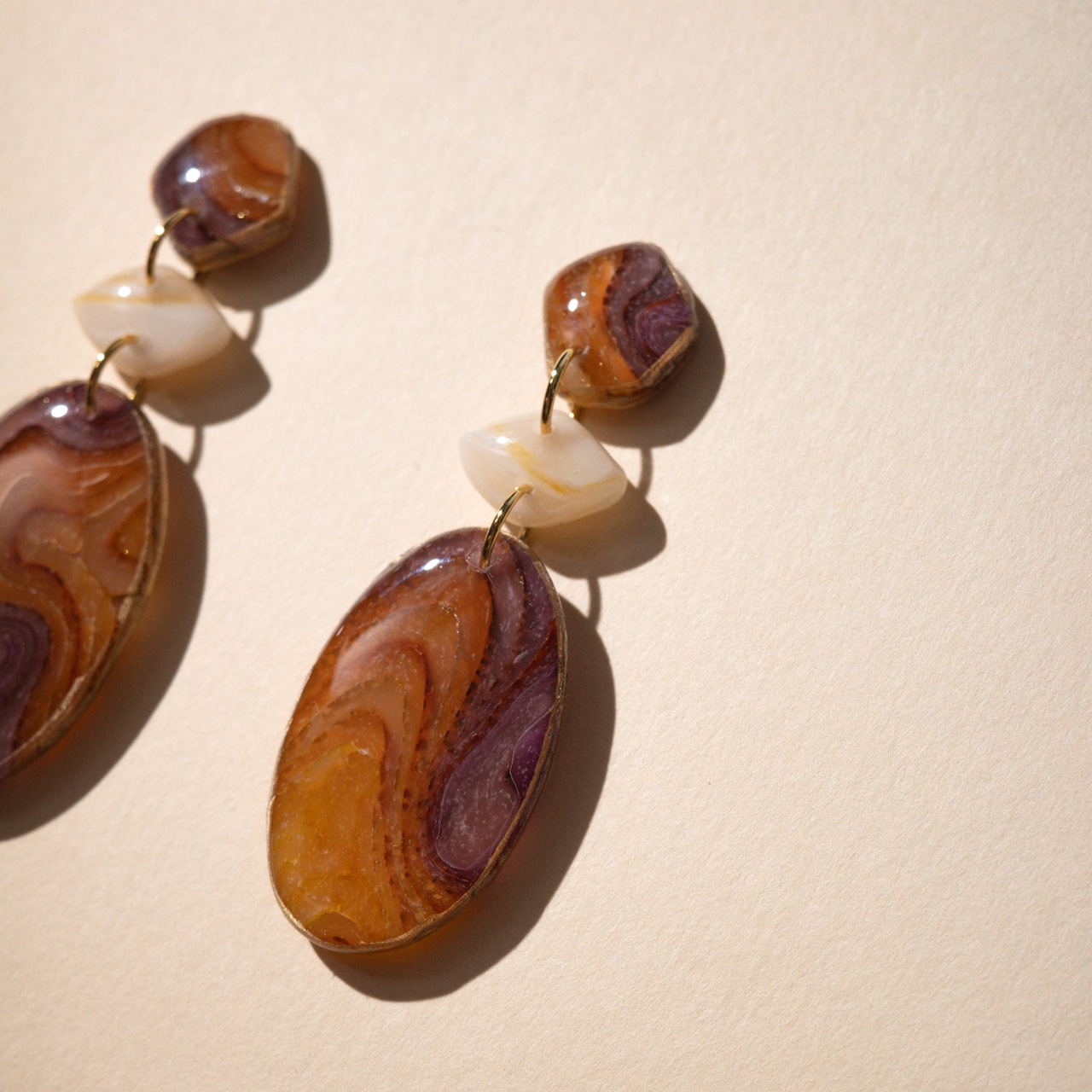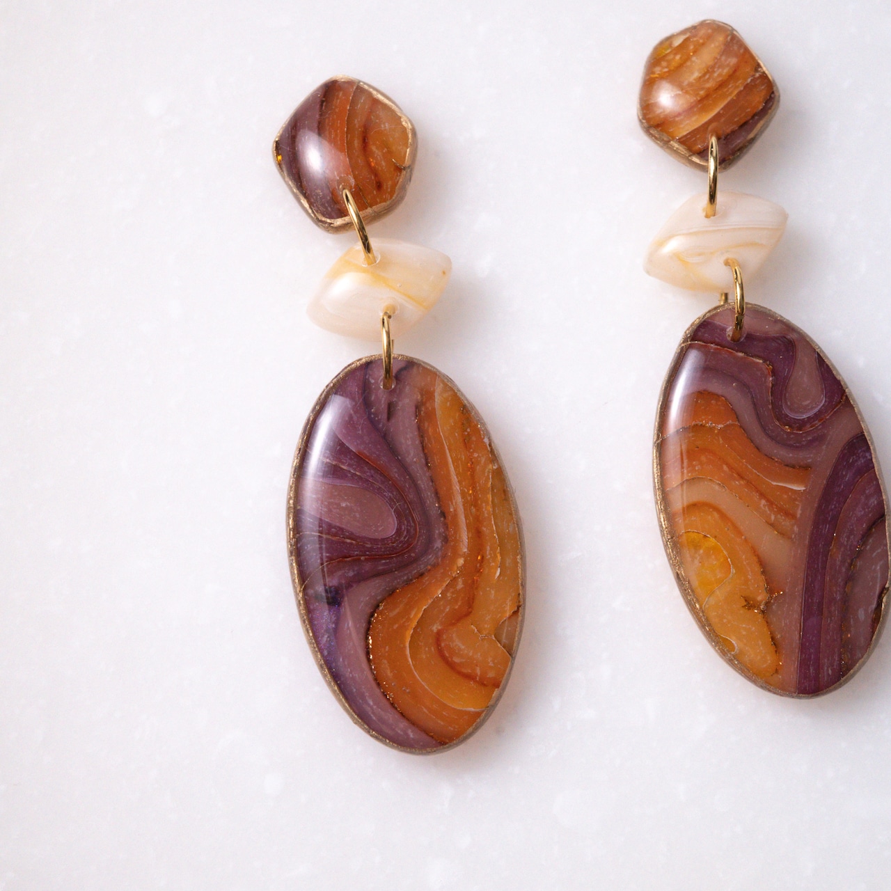秋の装いにぴったりのオレンジとパープルのアゲート柄。