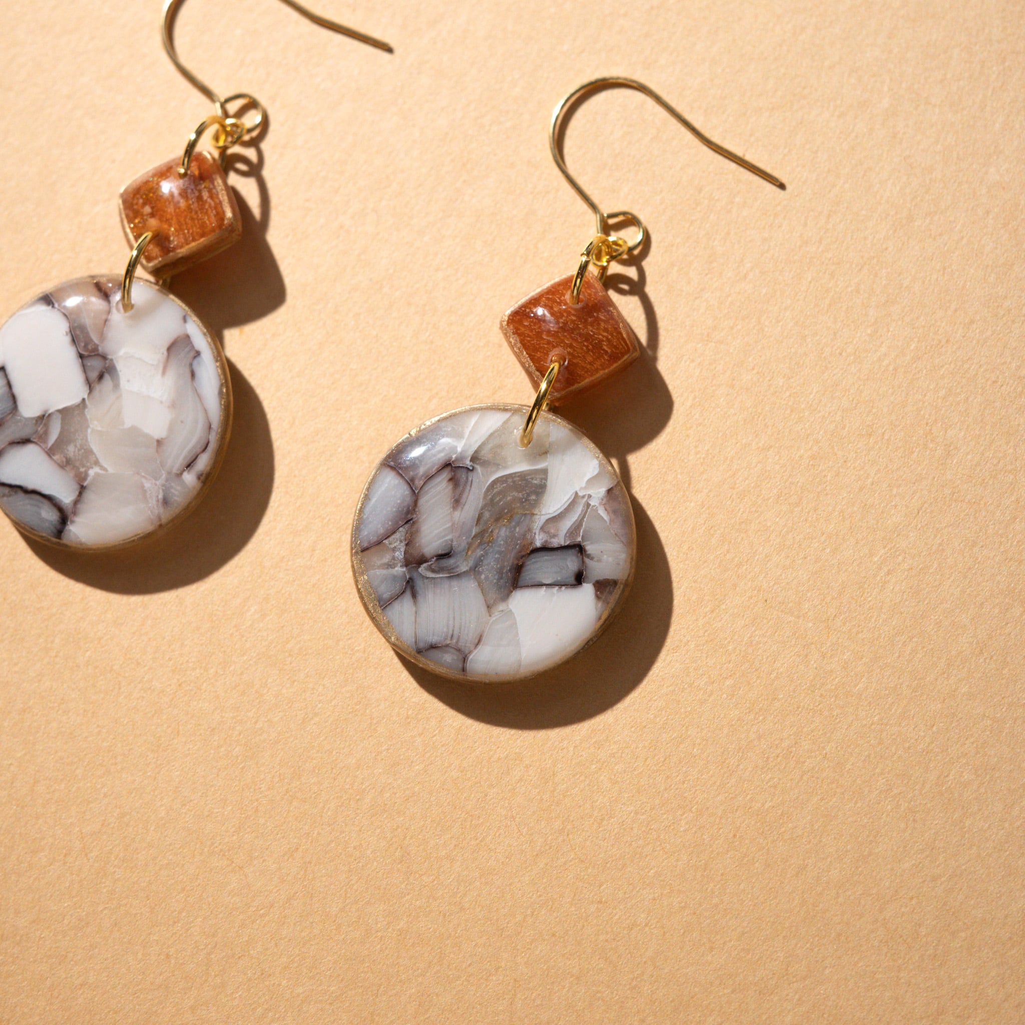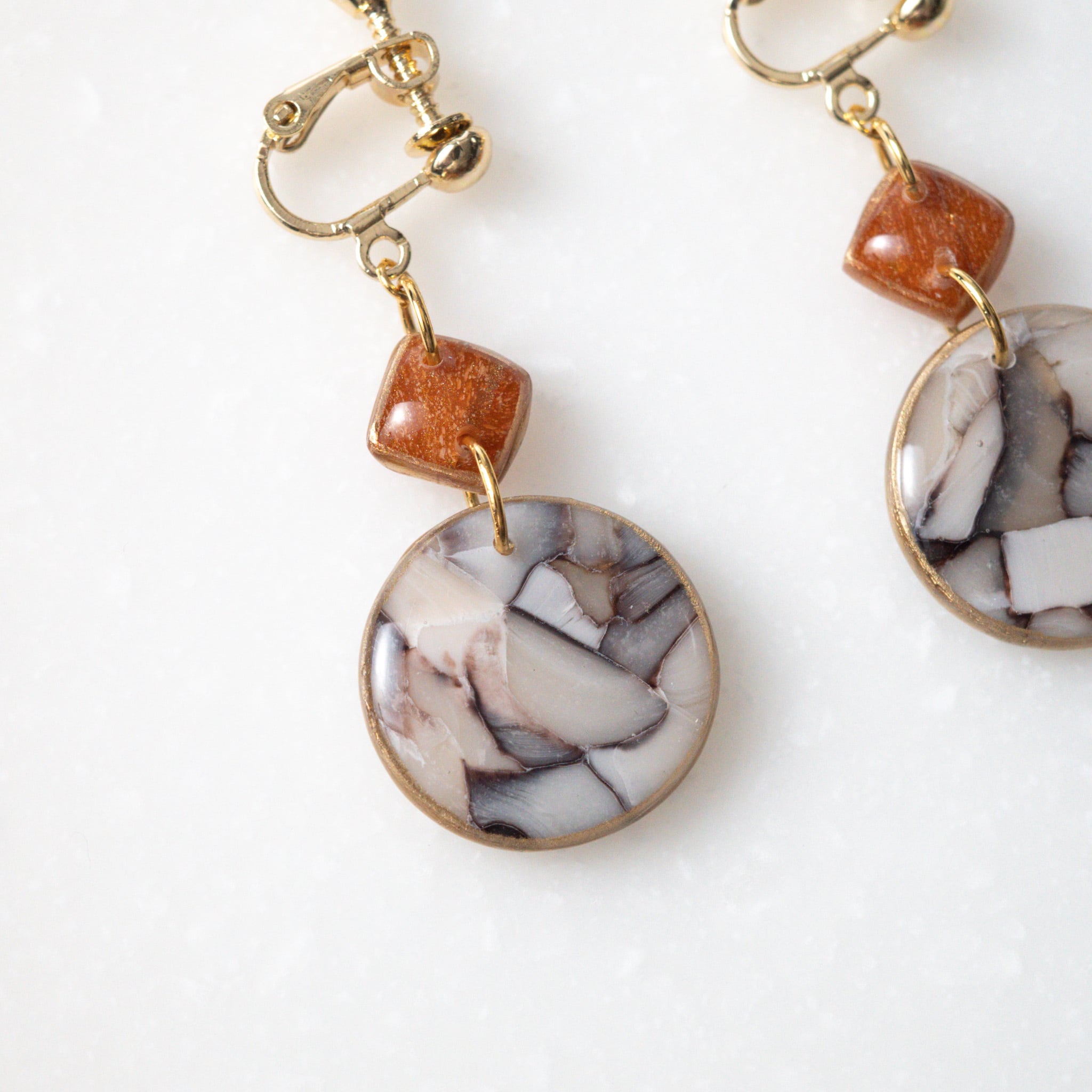まるで大理石を切り取ったかのような柄の耳飾り。