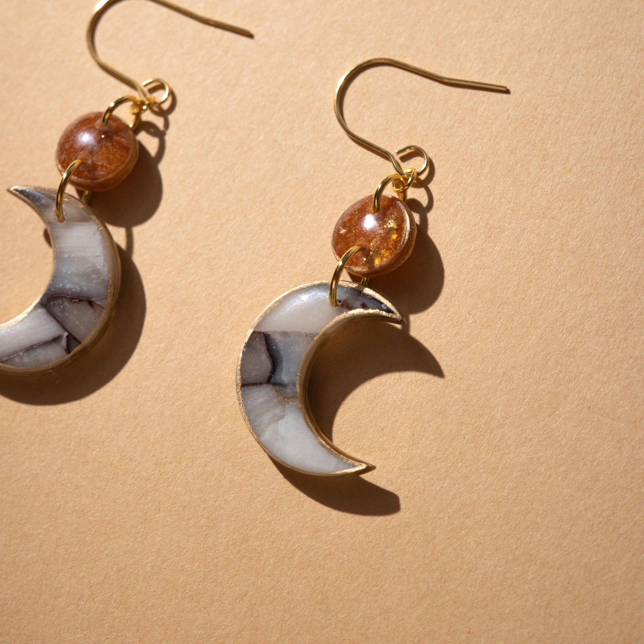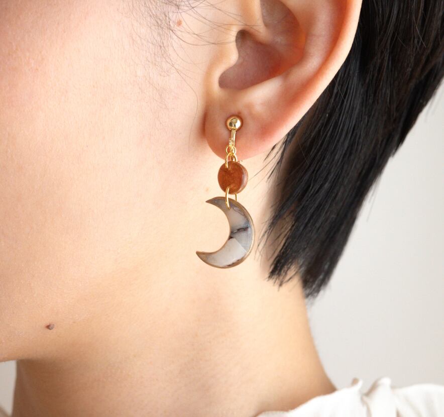 まるで大理石を切り取ったかのような柄の耳飾り。