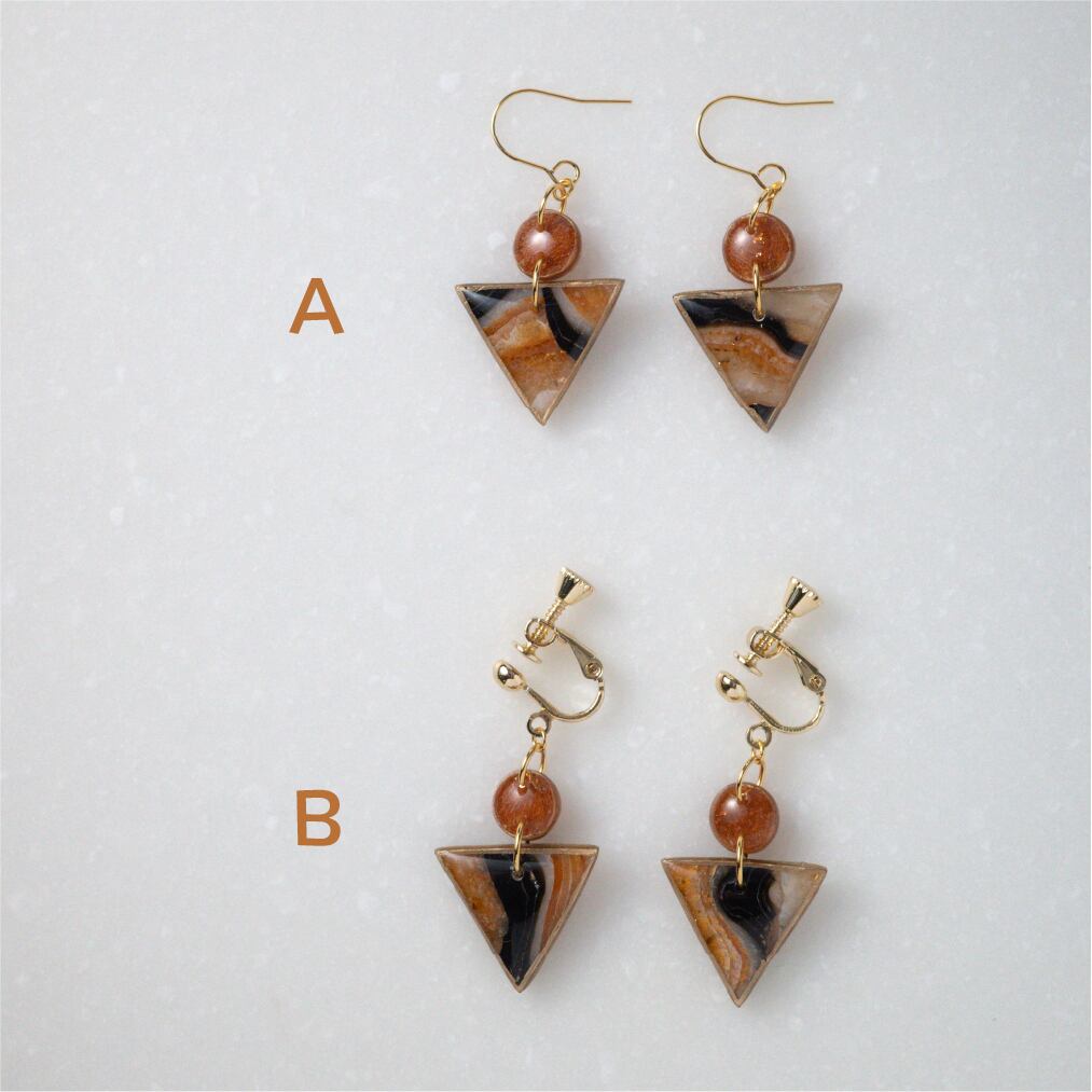 ポリマークレイという焼くと固くなる素材で作成したアクセサリーです。軽量な為、長時間着用しても痛くなりにくい特徴があります。