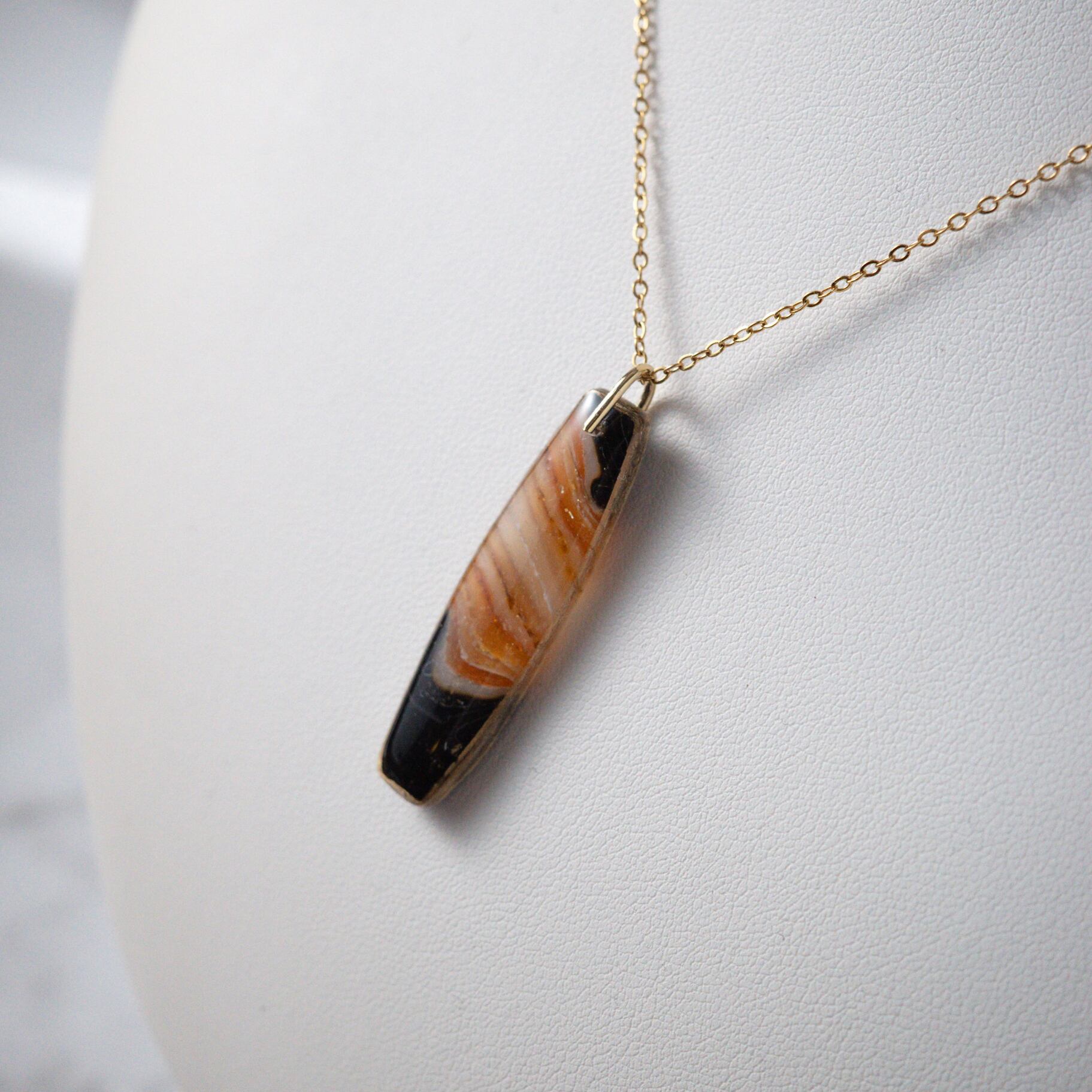 首元をスッキリ見せてくれる、スリムなモチーフのネックレスです。