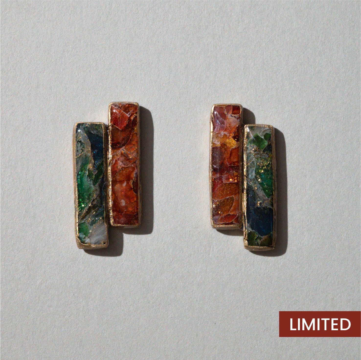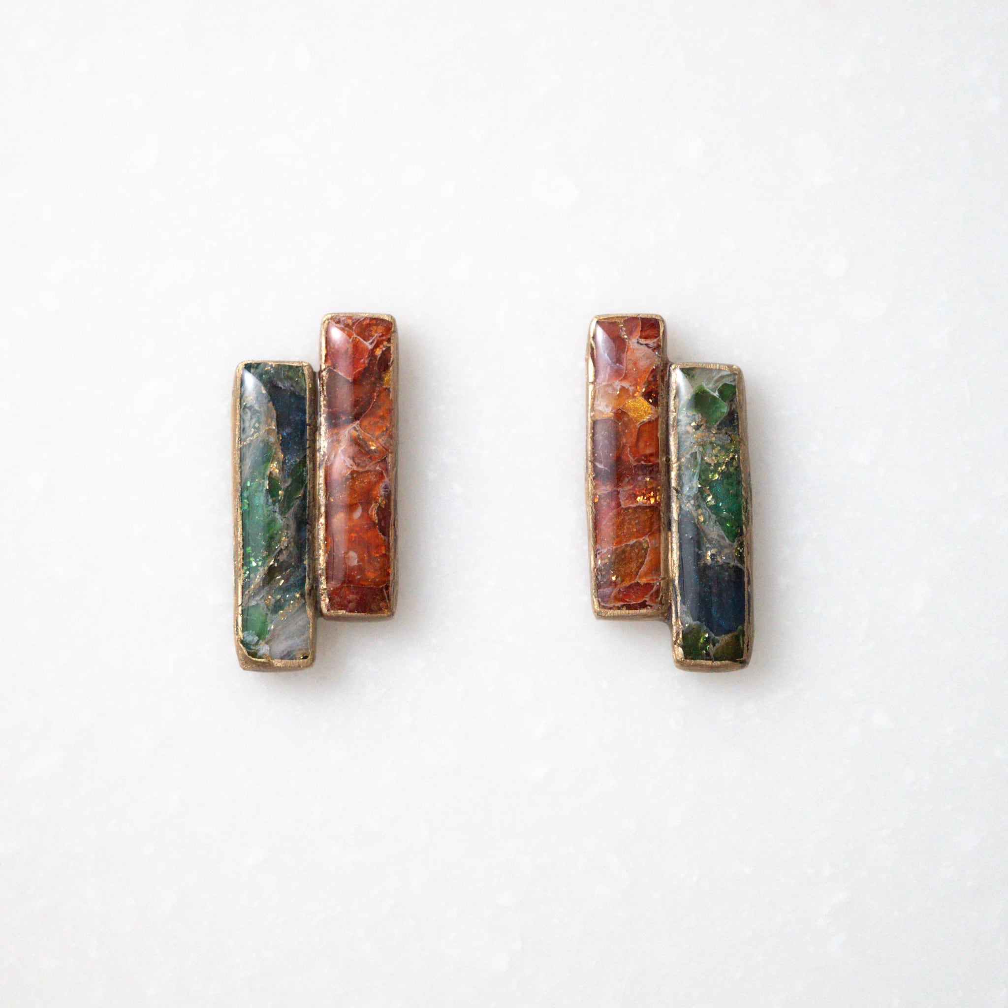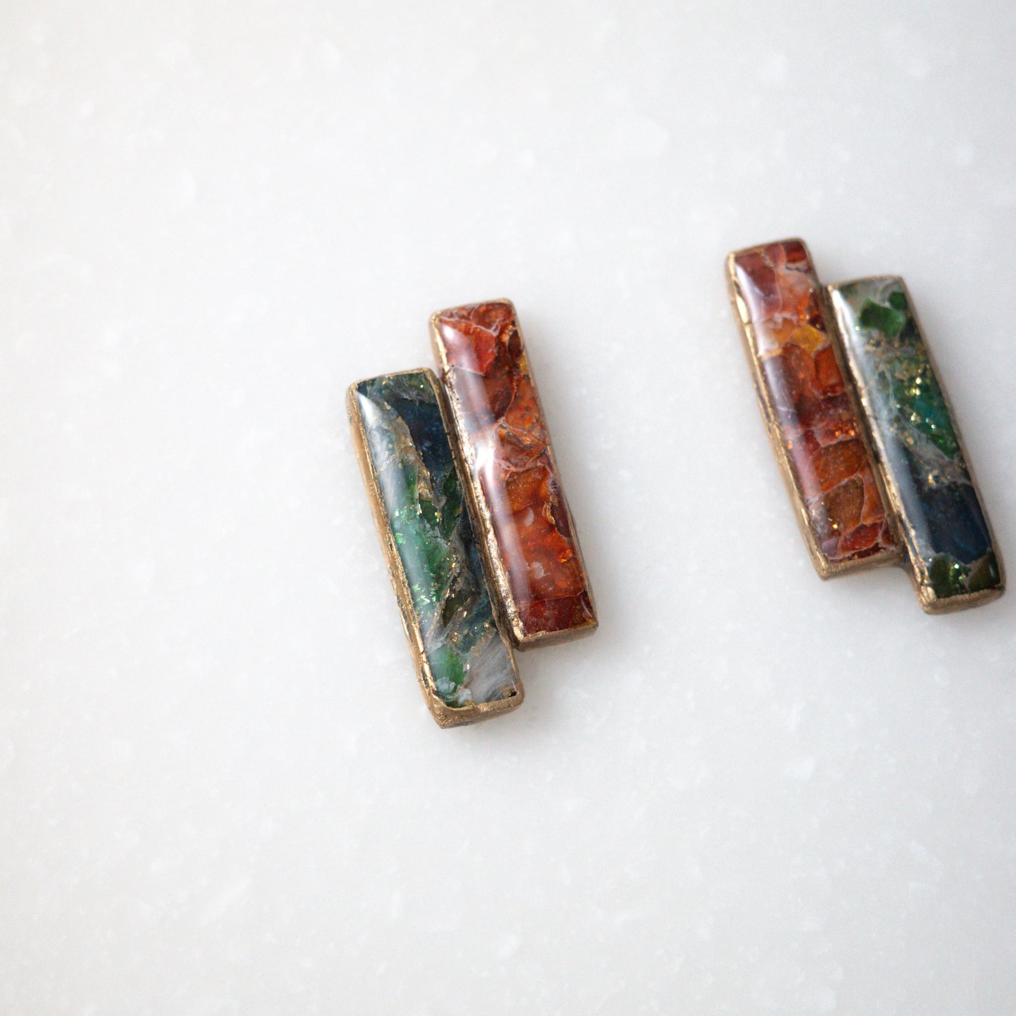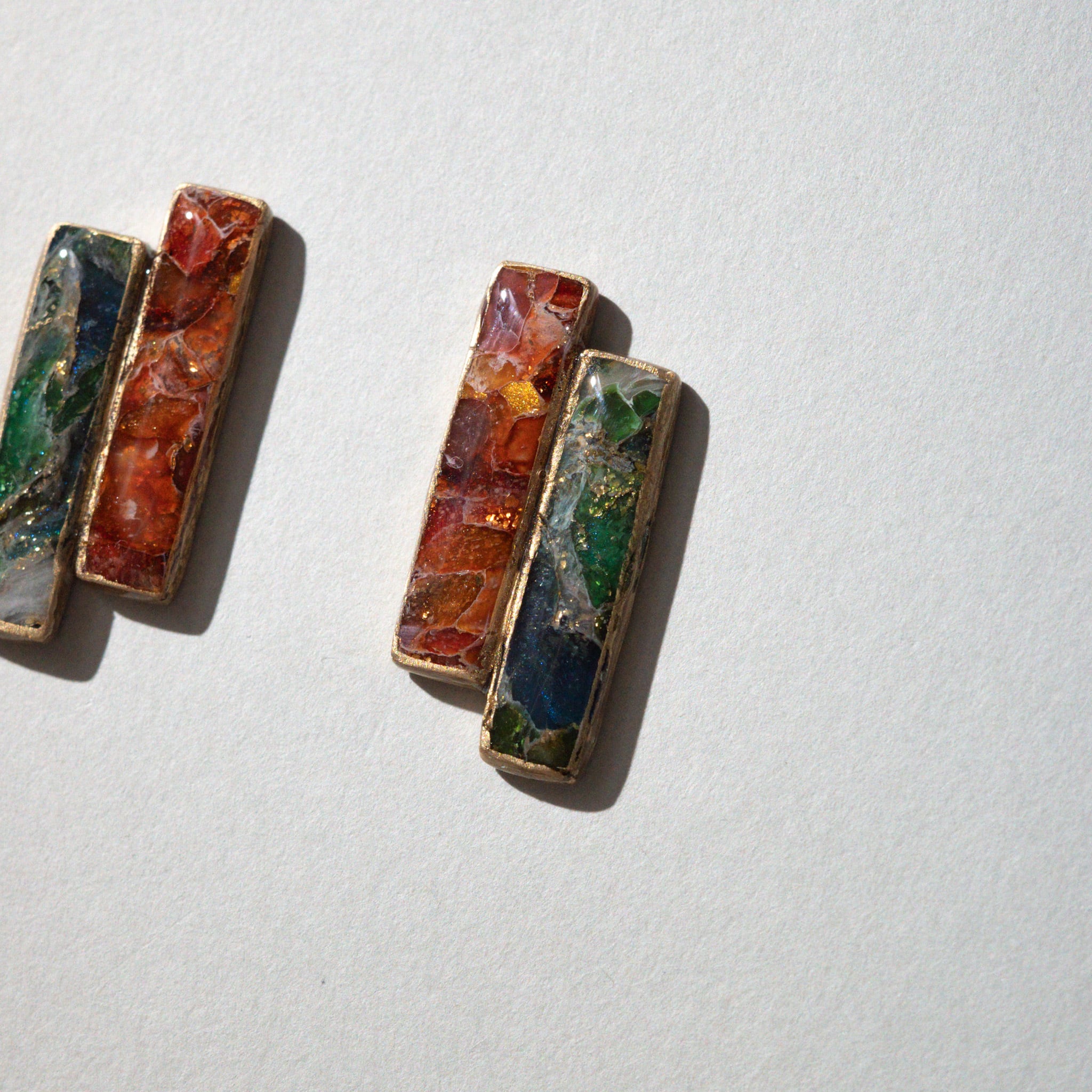まるで赤と緑の石を貼り合わせたようなバイカラースタッド。