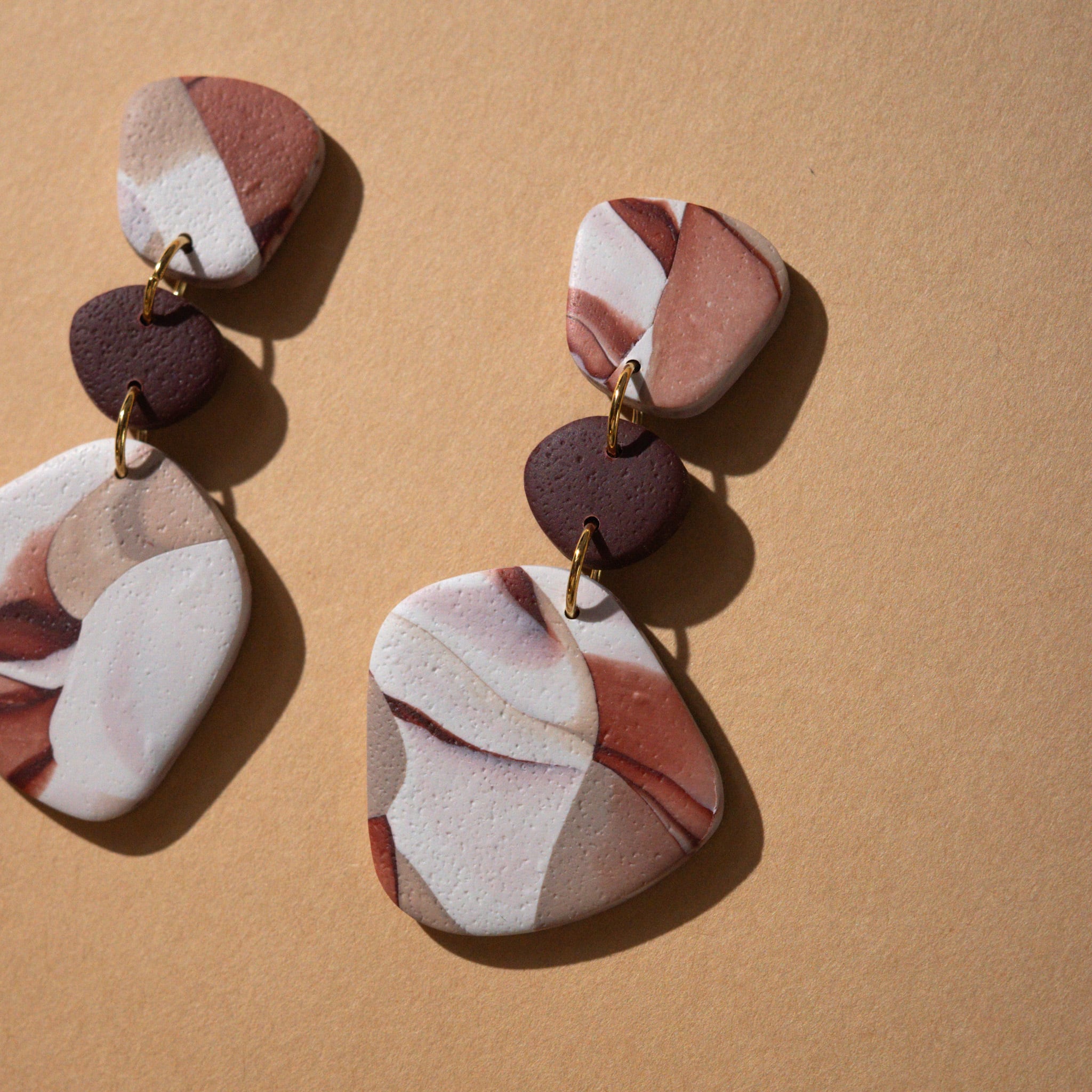 ポリマークレイという焼くと固くなる素材で作成したアクセサリーです。軽量な為、長時間着用しても痛くなりにくい特徴があります。