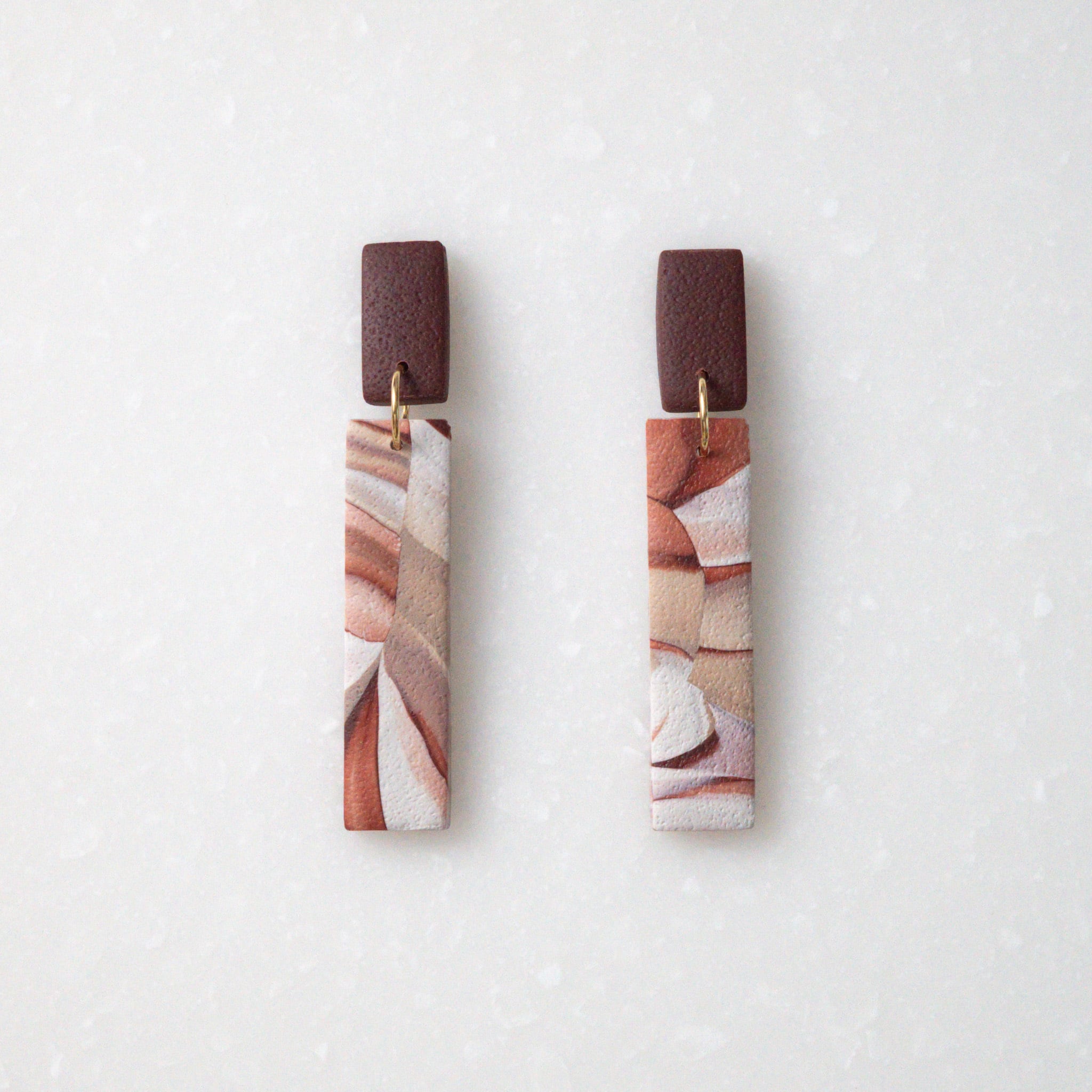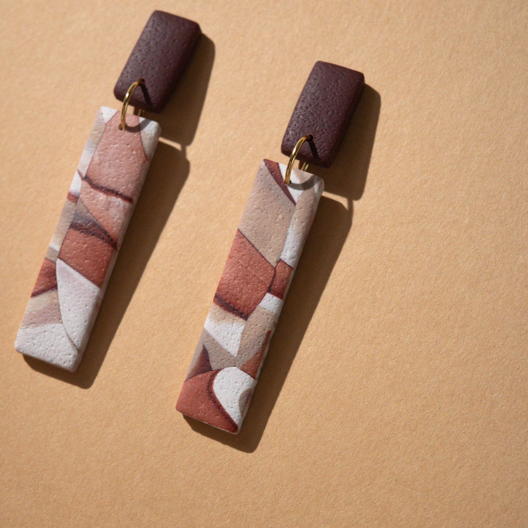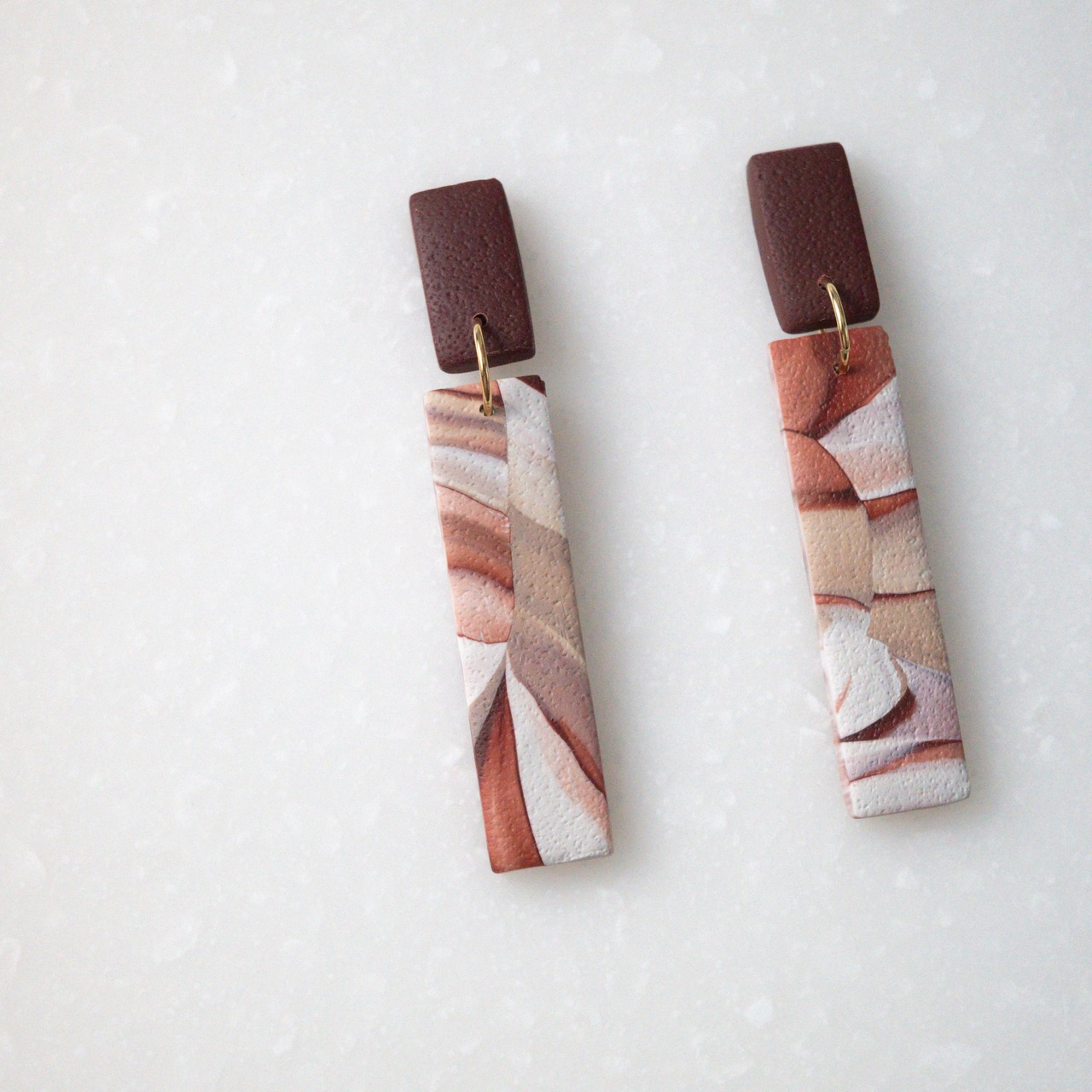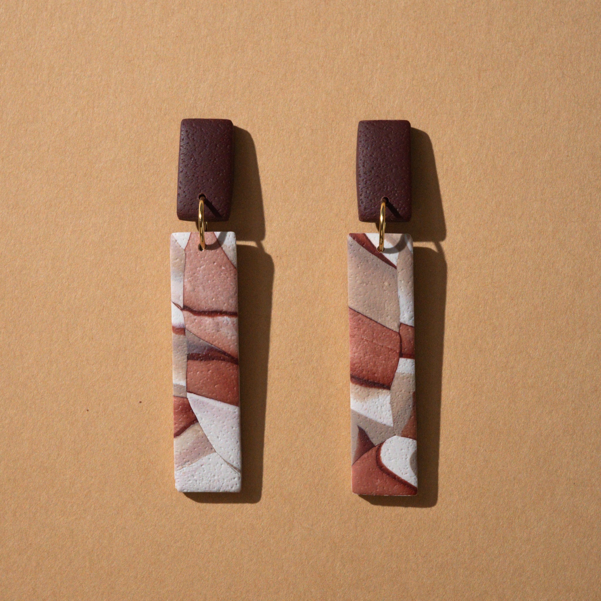 ポリマークレイという焼くと固くなる素材で作成したアクセサリーです。軽量な為、長時間着用しても痛くなりにくい特徴があります。
