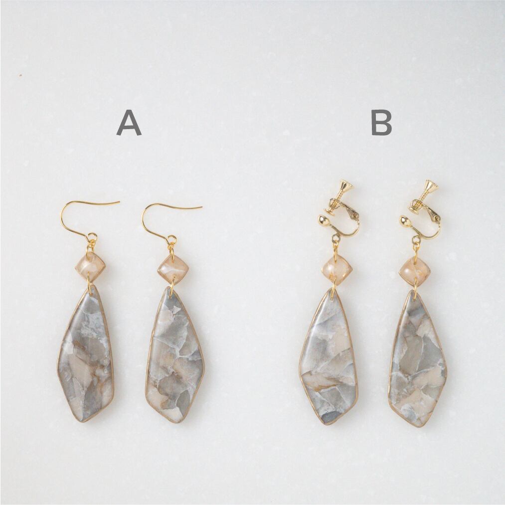 フックタイプピアス、またはネジバネ式イヤリングからお選びくださいませ。