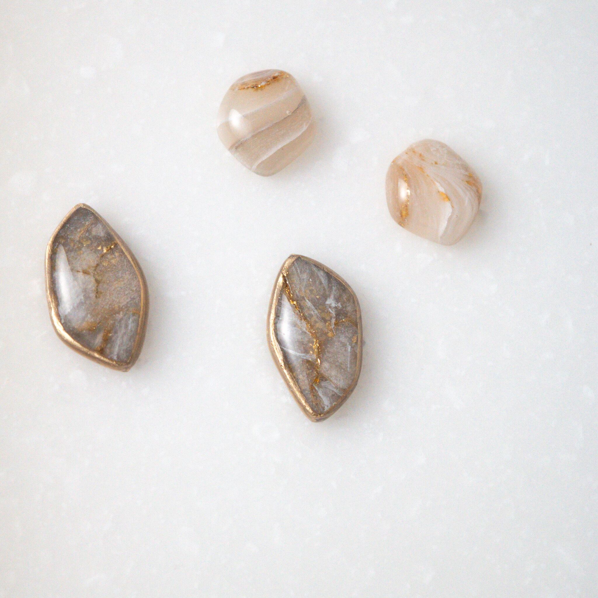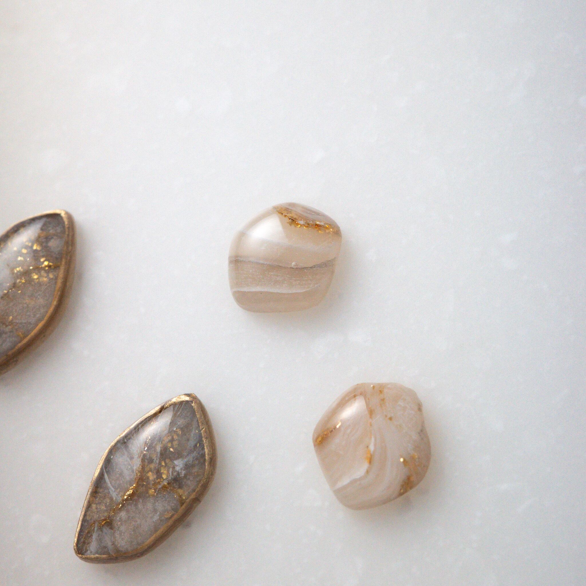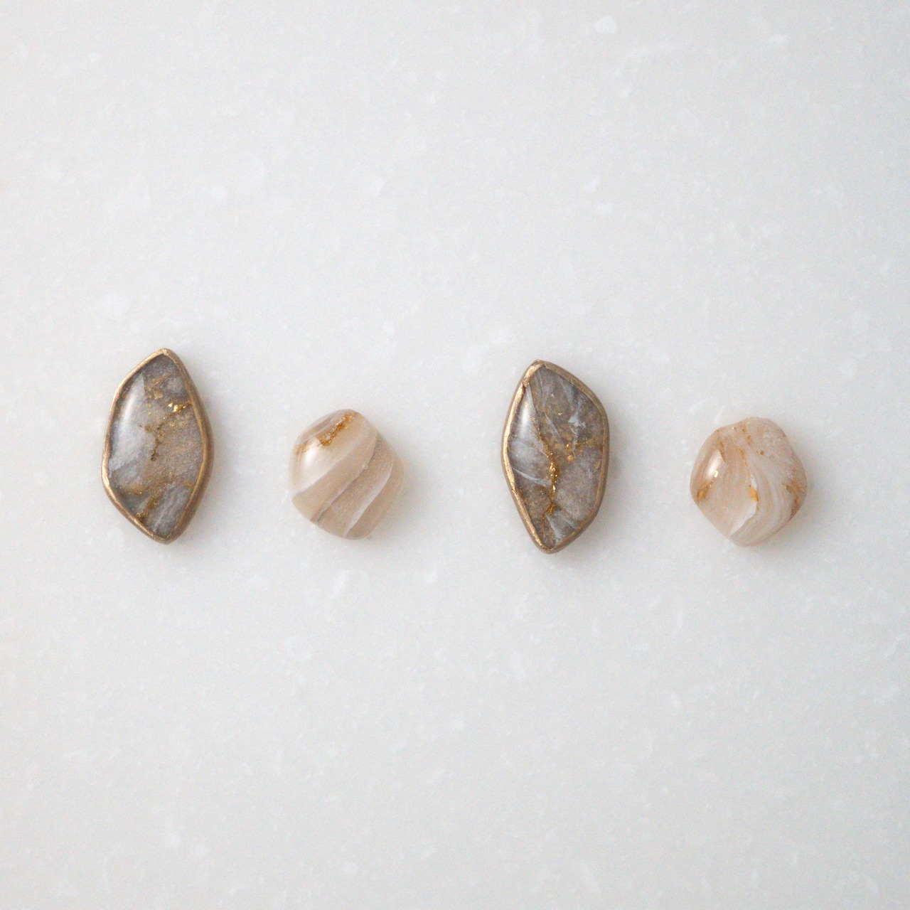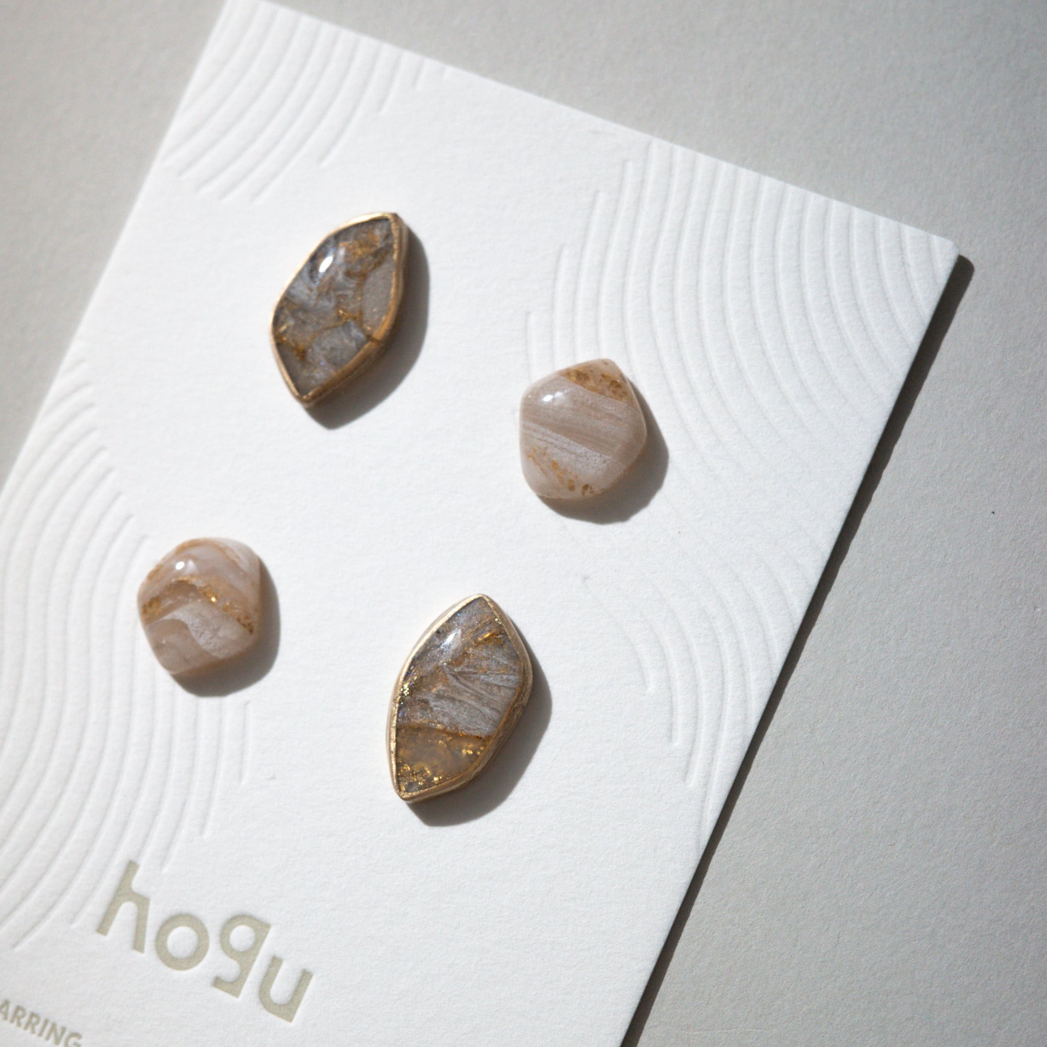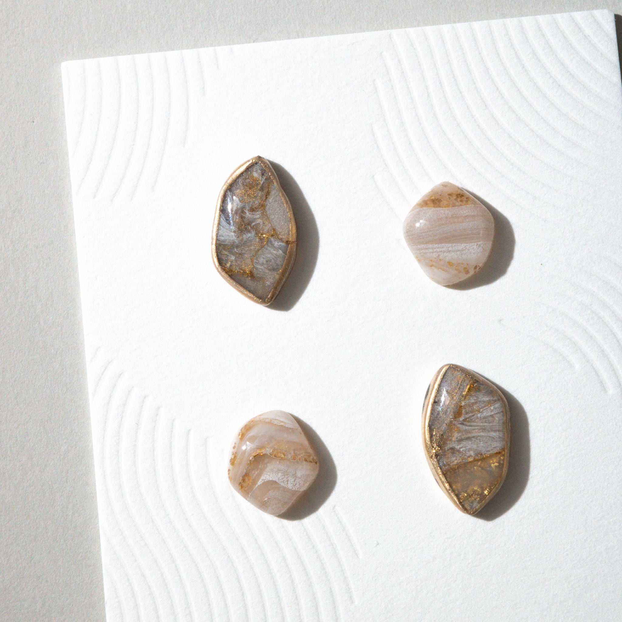 銀世界を思わせる透け感のあるクールなシルバーと、ホワイトアゲートの柄の二つのデザインが楽しめる4粒の小粒セット。