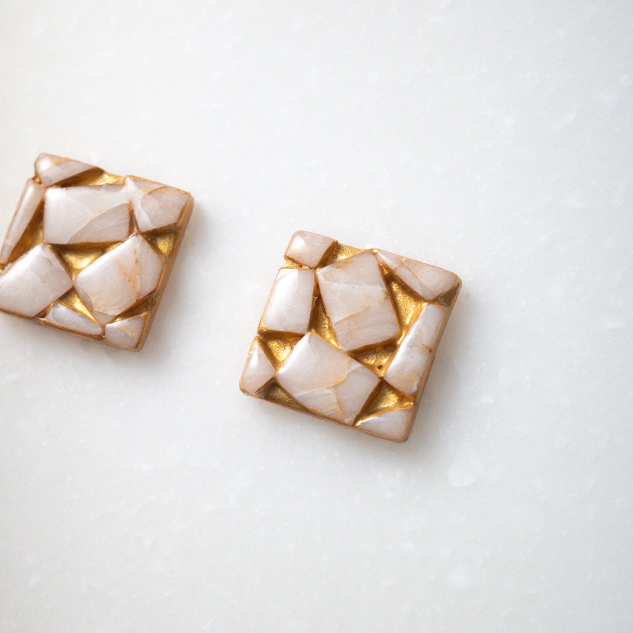 ポリマークレイという焼くと固くなる素材で作成したアクセサリーです。軽量な為、長時間着用しても痛くなりにくい特徴があります。