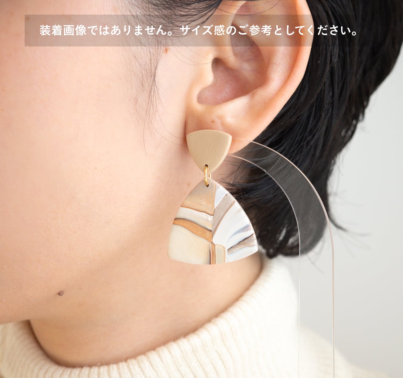 ポリマークレイという焼くと固くなる素材で作成したアクセサリーです。軽量な為、長時間着用しても痛くなりにくい特徴があります。