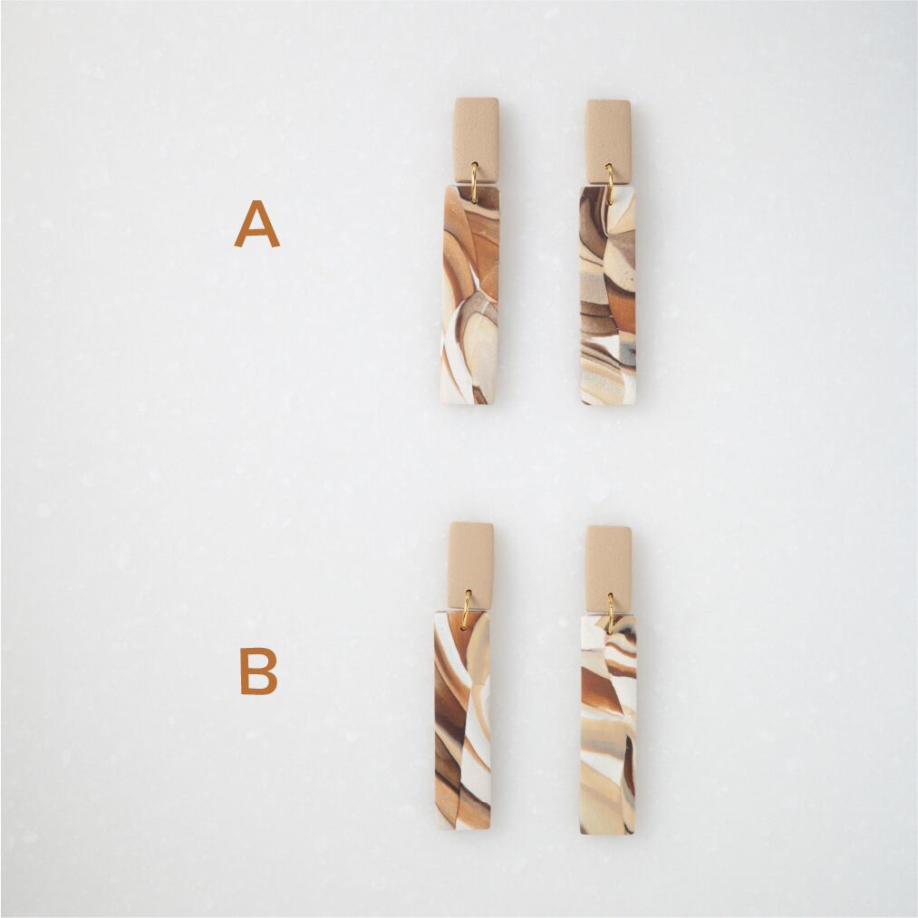 ポリマークレイという焼くと固くなる素材で作成したアクセサリーです。軽量な為、長時間着用しても痛くなりにくい特徴があります。