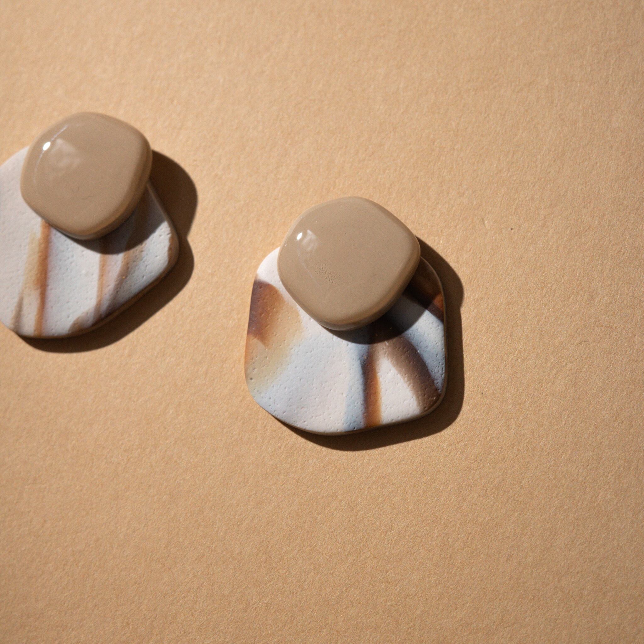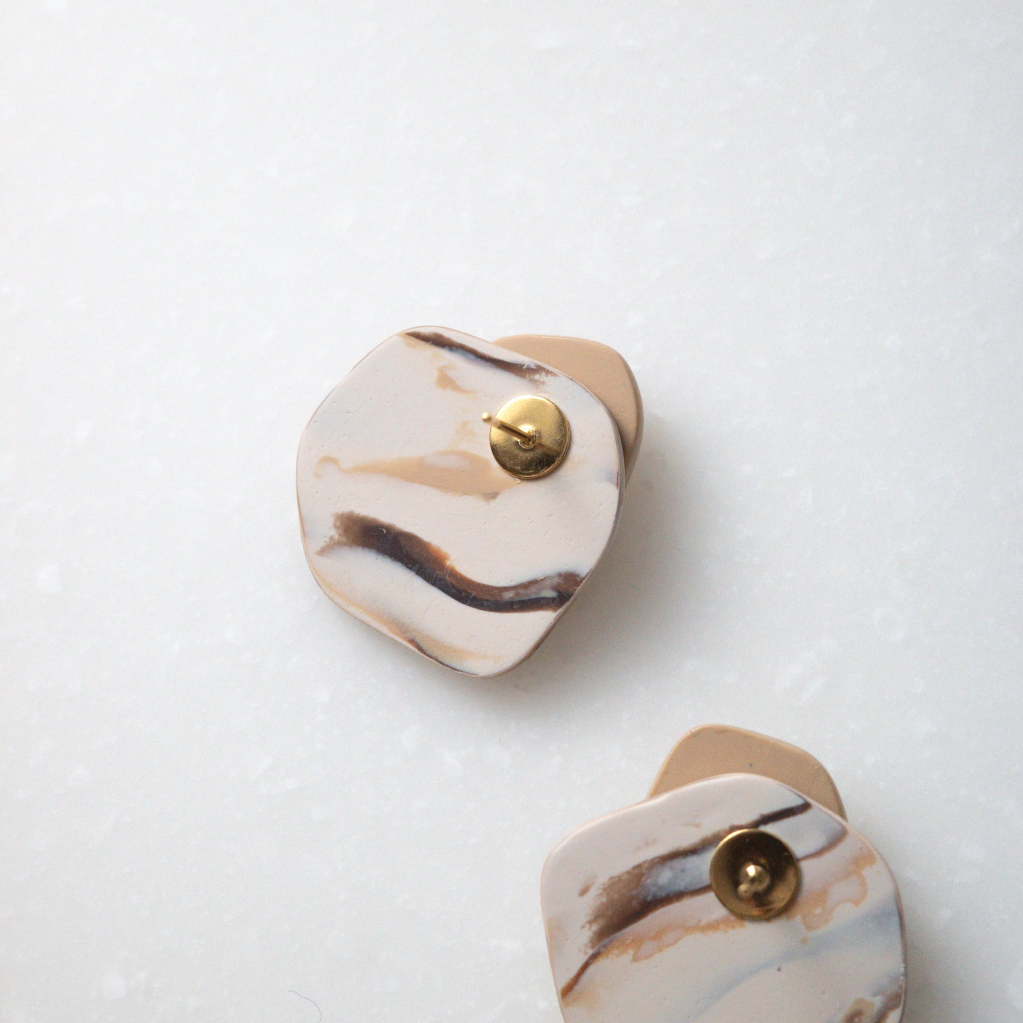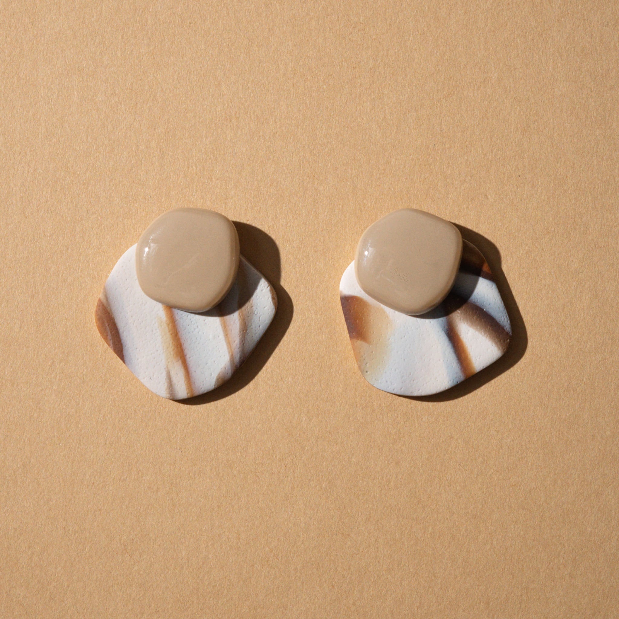 水たまりのような緩やかで不規則な形を二つ重ねた、個性的なスタッド。