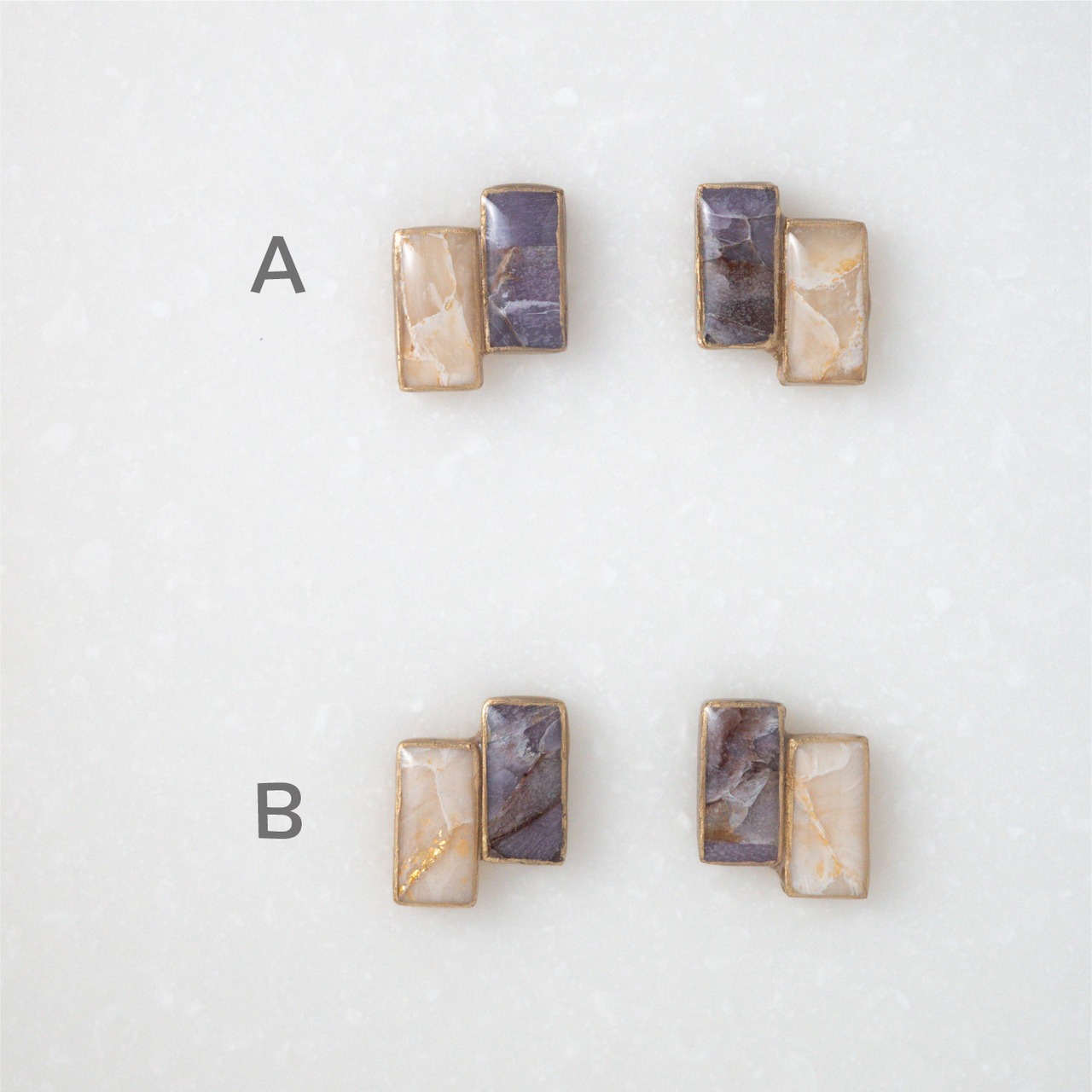 レクタングルの形を二つ組み合わせた、シンプルで個性的なデザイン。