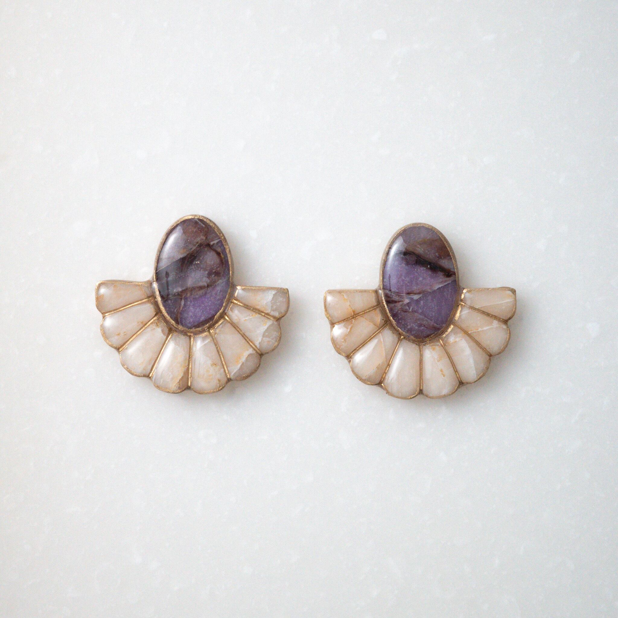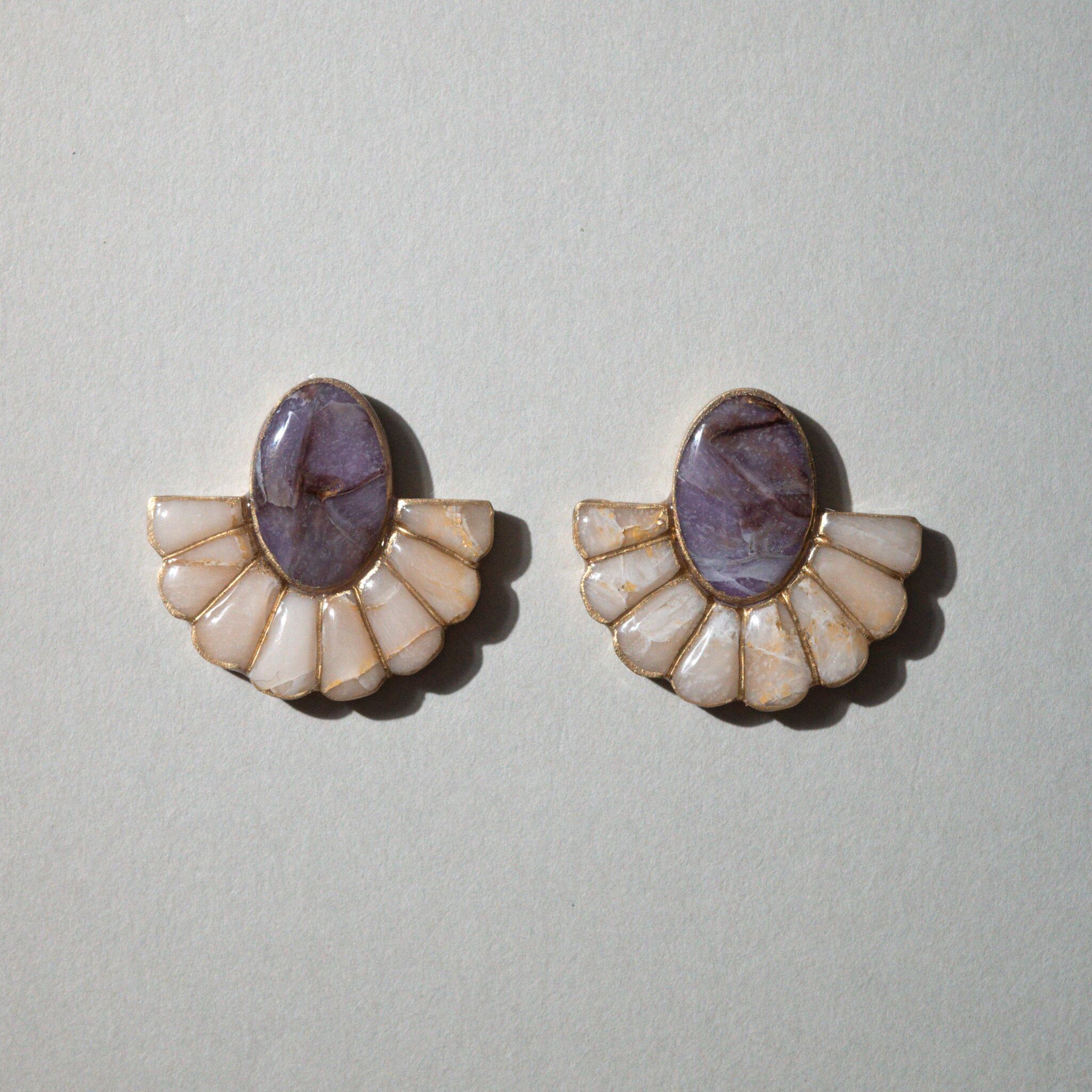 ドライフラワーのラベンダーのような、上品な渋みのある紫と柔らかなホワイトの組み合わせです。