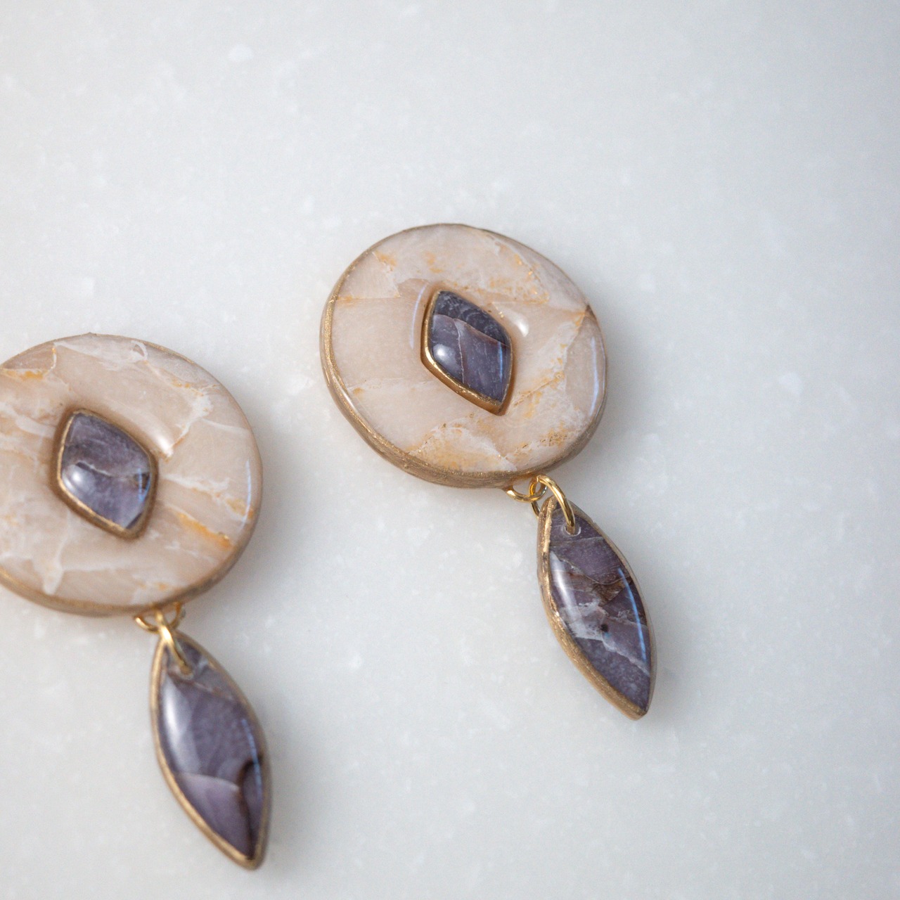 ⚫︎ポリマークレイは水に強い素材ですが、金具の部分は劣化してしまいますので、水に濡れた場合は拭き取っていただけますようお願いいたします。