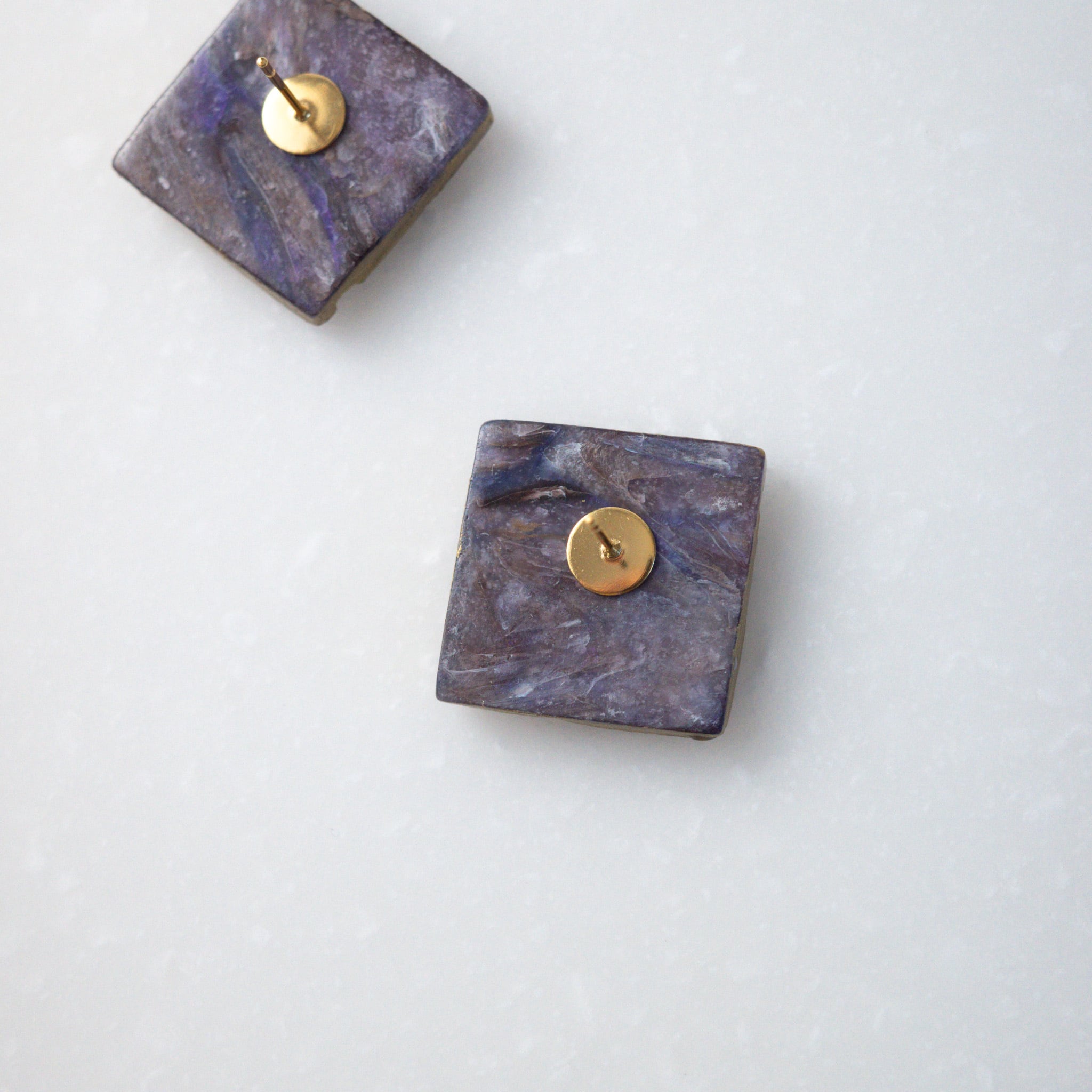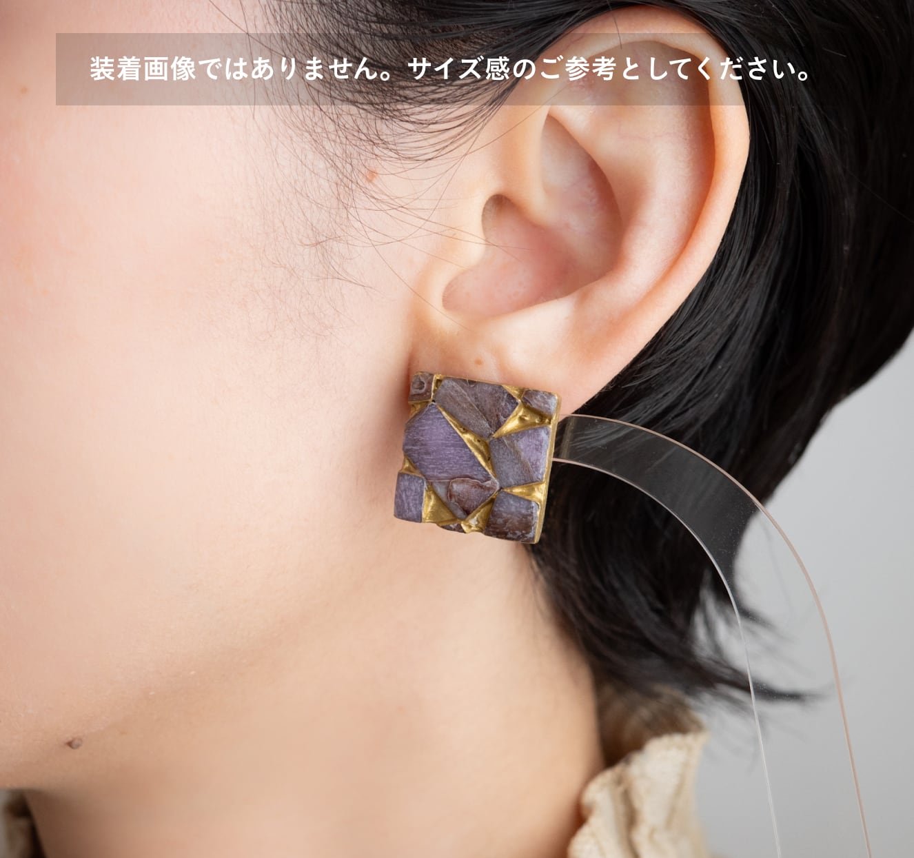 ドライフラワーのラベンダーのようなカラーを不規則に並べた、まるでアートピースのようなデザイン。あなたの耳元を個性的に、華やかに飾ります。