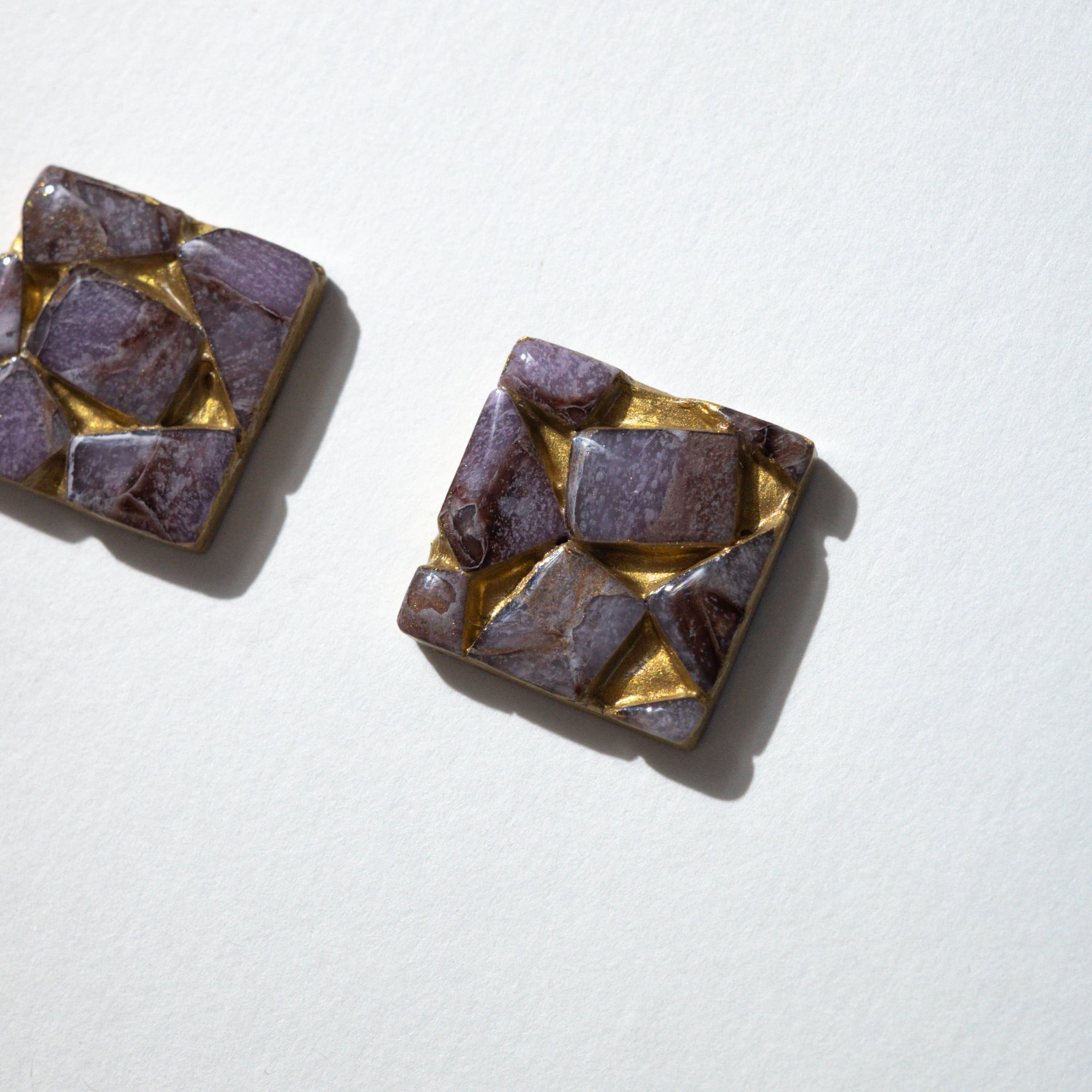 デザインにはポリマークレイとアクリルインクを使い、上から樹脂・ニスコーティングを施しています。