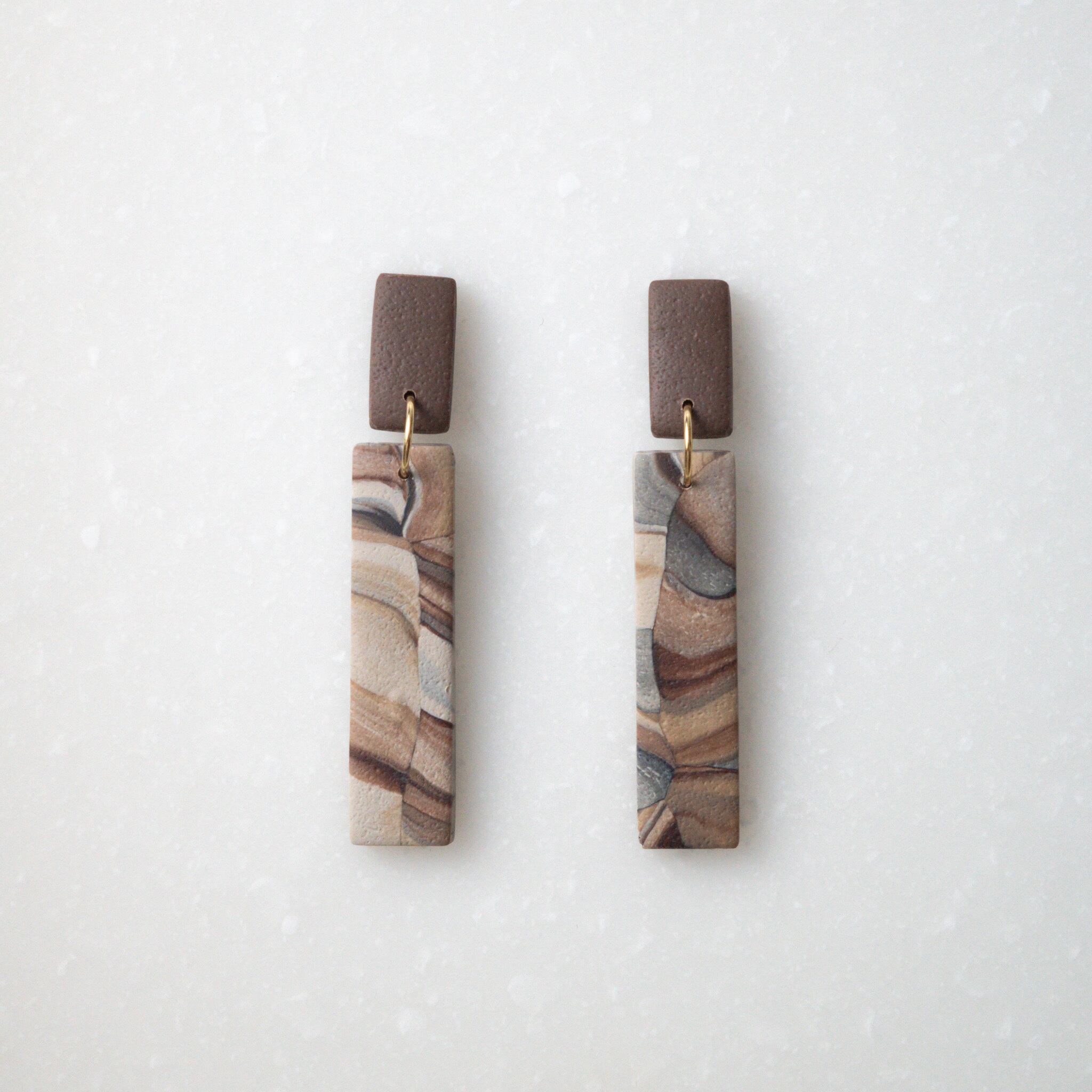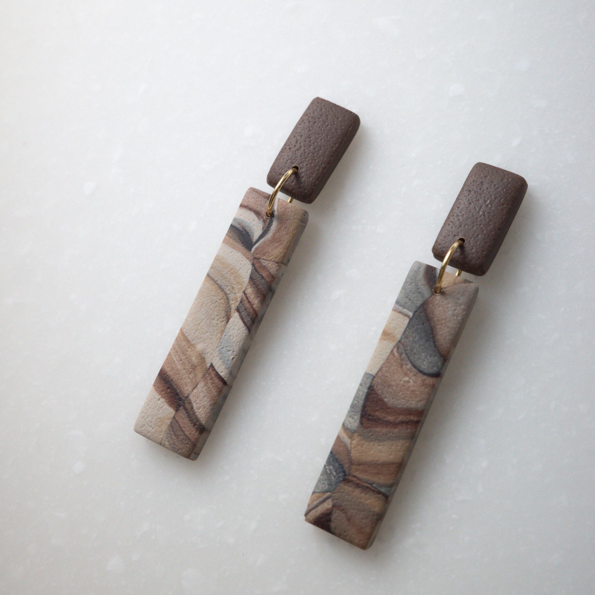 ポリマークレイという焼くと固くなる素材で作成したアクセサリーです。軽量な為、長時間着用しても痛くなりにくい特徴があります。