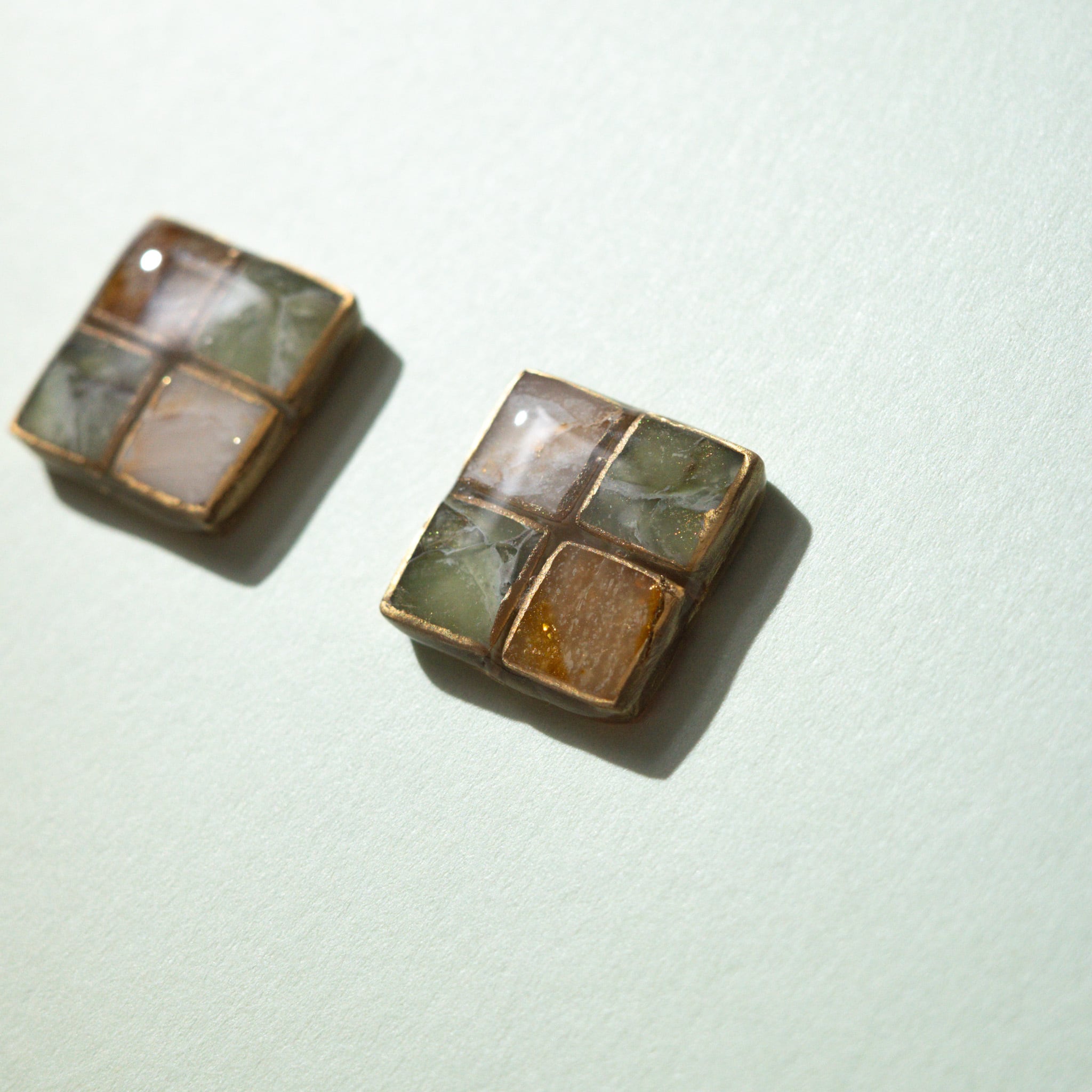 デザインにはポリマークレイと顔良油性インクを使い、上から樹脂コーティングを施しています。