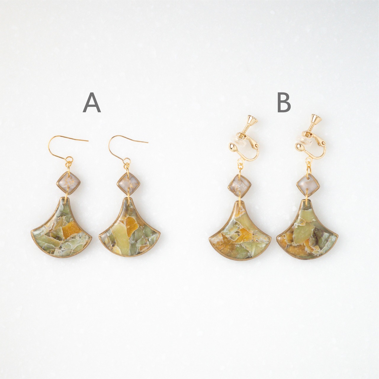 フックタイプピアス、またはネジバネ式イヤリングからお選びくださいませ。