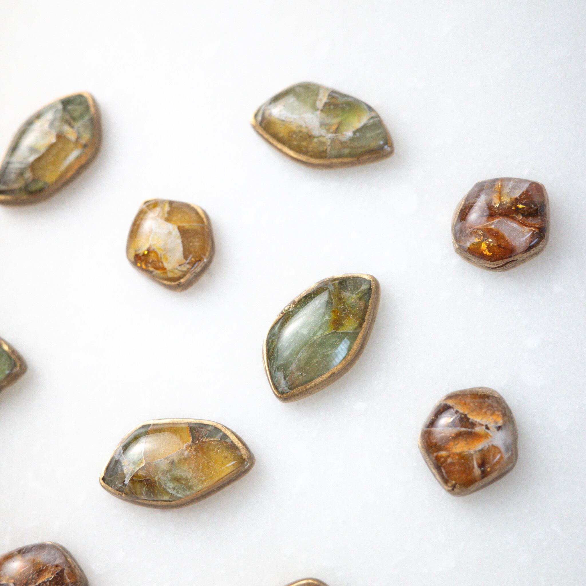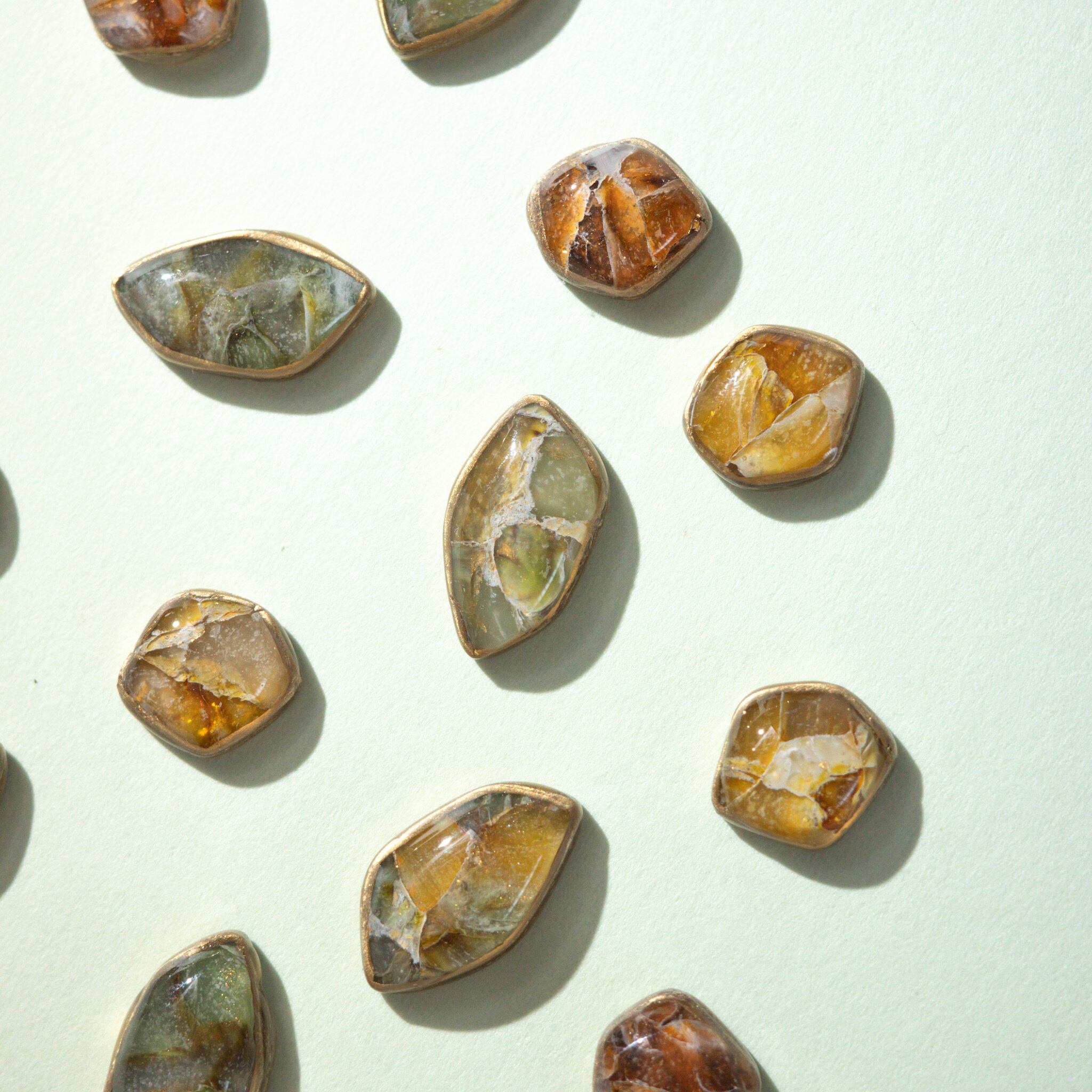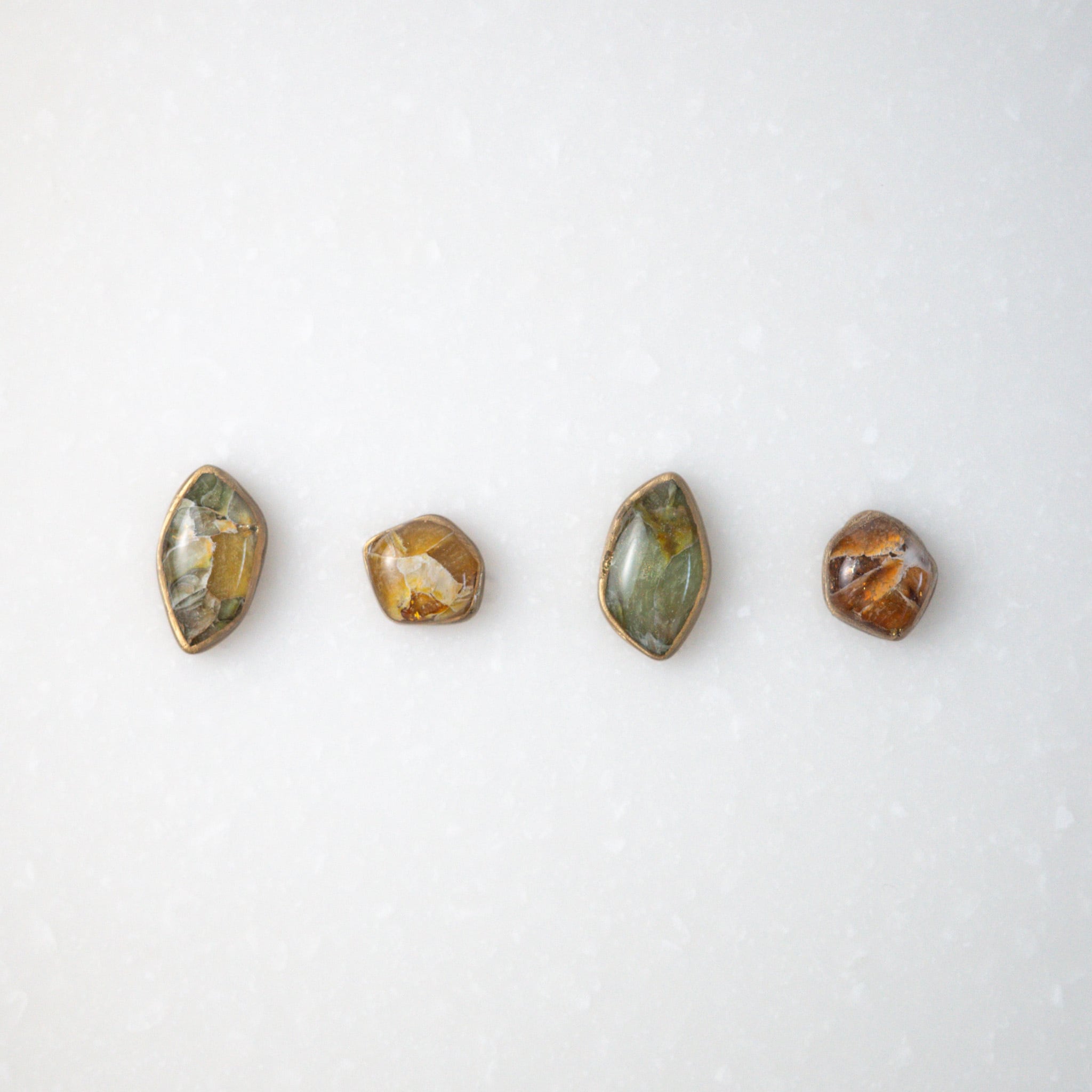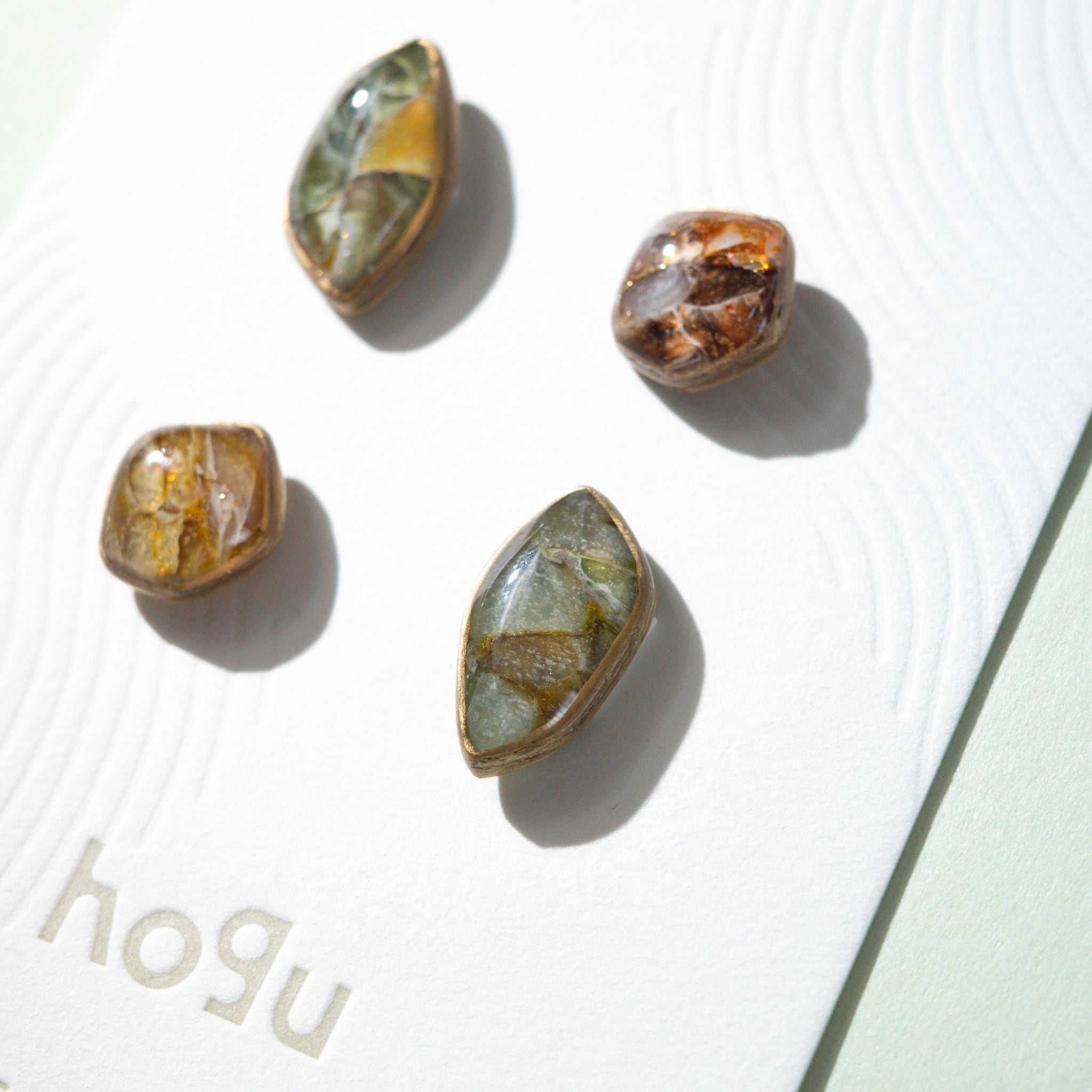 春のグリーンやイエロー、くすみ感のある上品なイエローブラウンを楽しめる4粒の小粒セット。