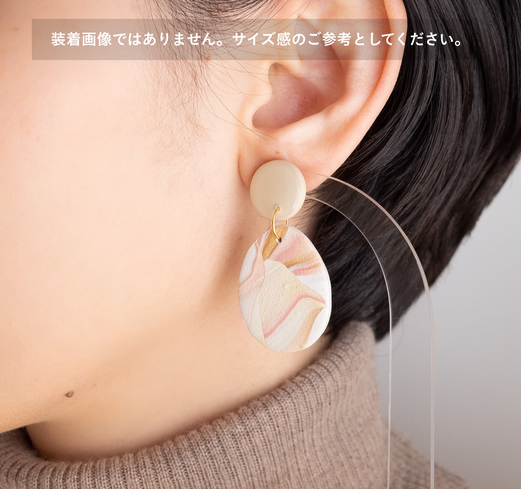 装着部金具に関してはアレルギー対応のニッケルフリーやサージカルステンレス(ゴールドはニッケルフリーメッキ加工)のご用意もございますが、アレルギー反応が必ずしも出にくいというものではございませんので、お肌に異常を感じましたらすぐに外していただけますようお願い申し上げます。