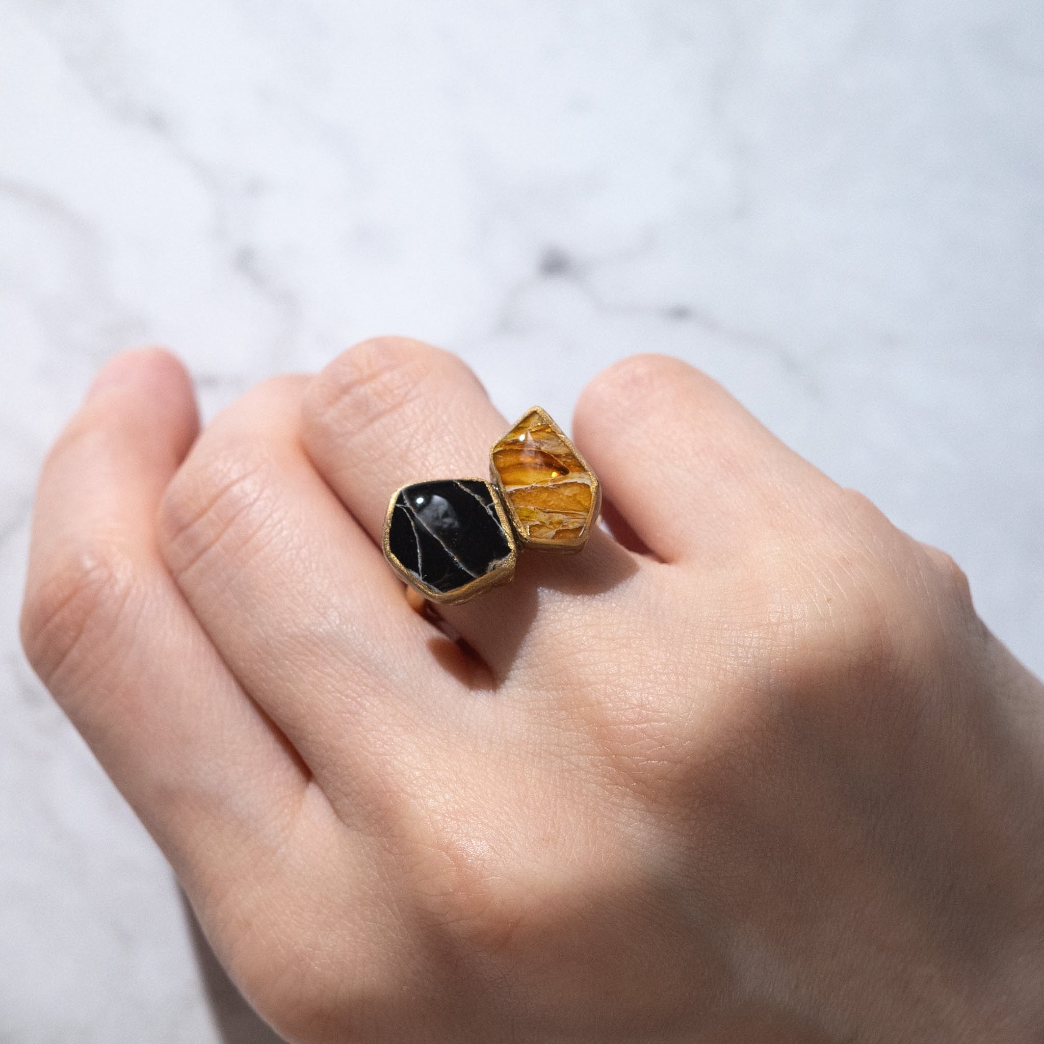 細かな縞模様の揺らぎを楽しめるカケラの形のリング。